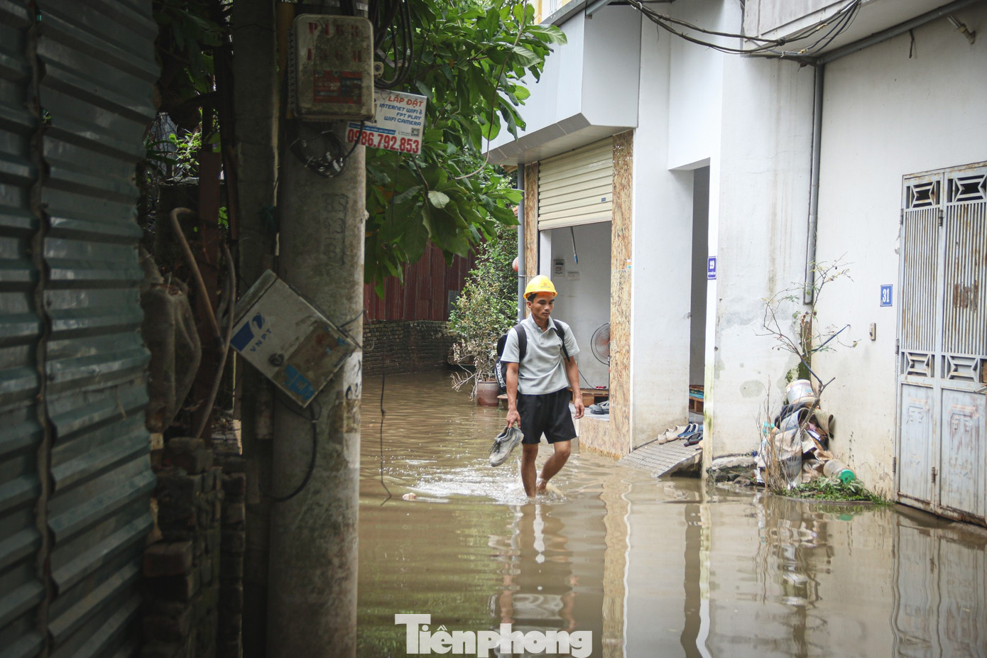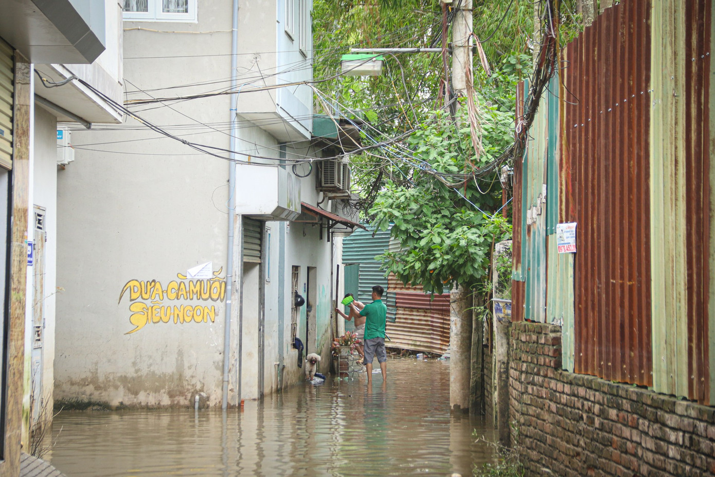 Sáng 6/10, dù mưa đã ngừng một tuần nhưng nhiều con đường dẫn vào tổ dân phố số 2 Miêu Nha, phường Xuân Phương (Hà Nội) vẫn chưa hết cảnh "biển nước". Nhiều ngõ nhỏ vẫn chìm trong lớp nước đục ngầu cao tới 20 – 30 cm.