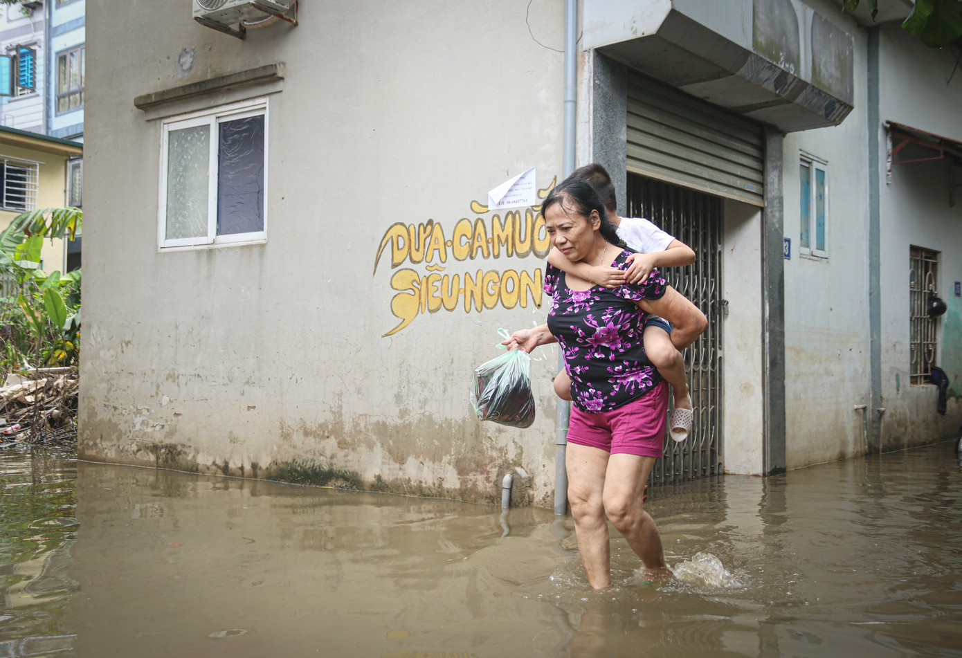6 ngày qua, gia đình ông Vũ Mạnh Lý phải di tản ra ngoài để "trốn" ngập. “Nước ngập đến cổ, gia đình tôi phải đi chạy ngập trong đêm. Sau ngập 6 ngày, tới hôm qua gia đình tôi mới dám về lại nhà để dọn dẹp. Bùn đen bám đầy tường, đồ đạc ướt nhẹp, dọn đến đâu lại bẩn đến đó. Khổ nhất là người già và trẻ nhỏ”, ông Lý nói.