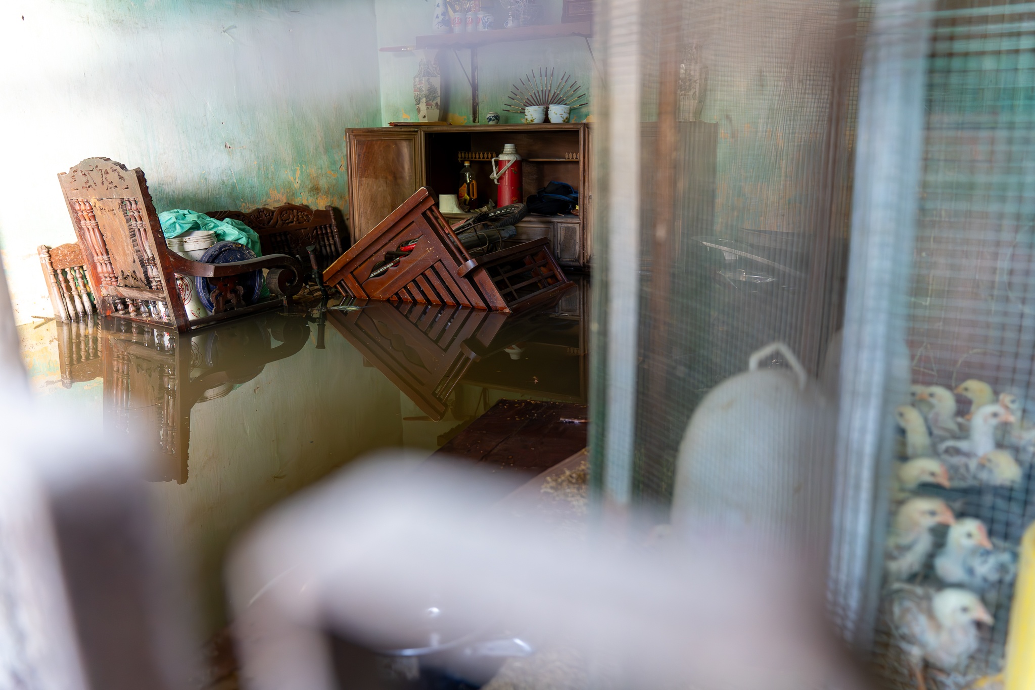 Nước dâng cao tràn vào nhà gây thiệt hại tài sản lớn. Đồ đạc được kê tạm lên cao để tránh ẩm ướt. Bất chấp nguy cơ mất đồ, nhiều hộ phải chọn cách di tản đến nơi khác tạm thời sinh sống.