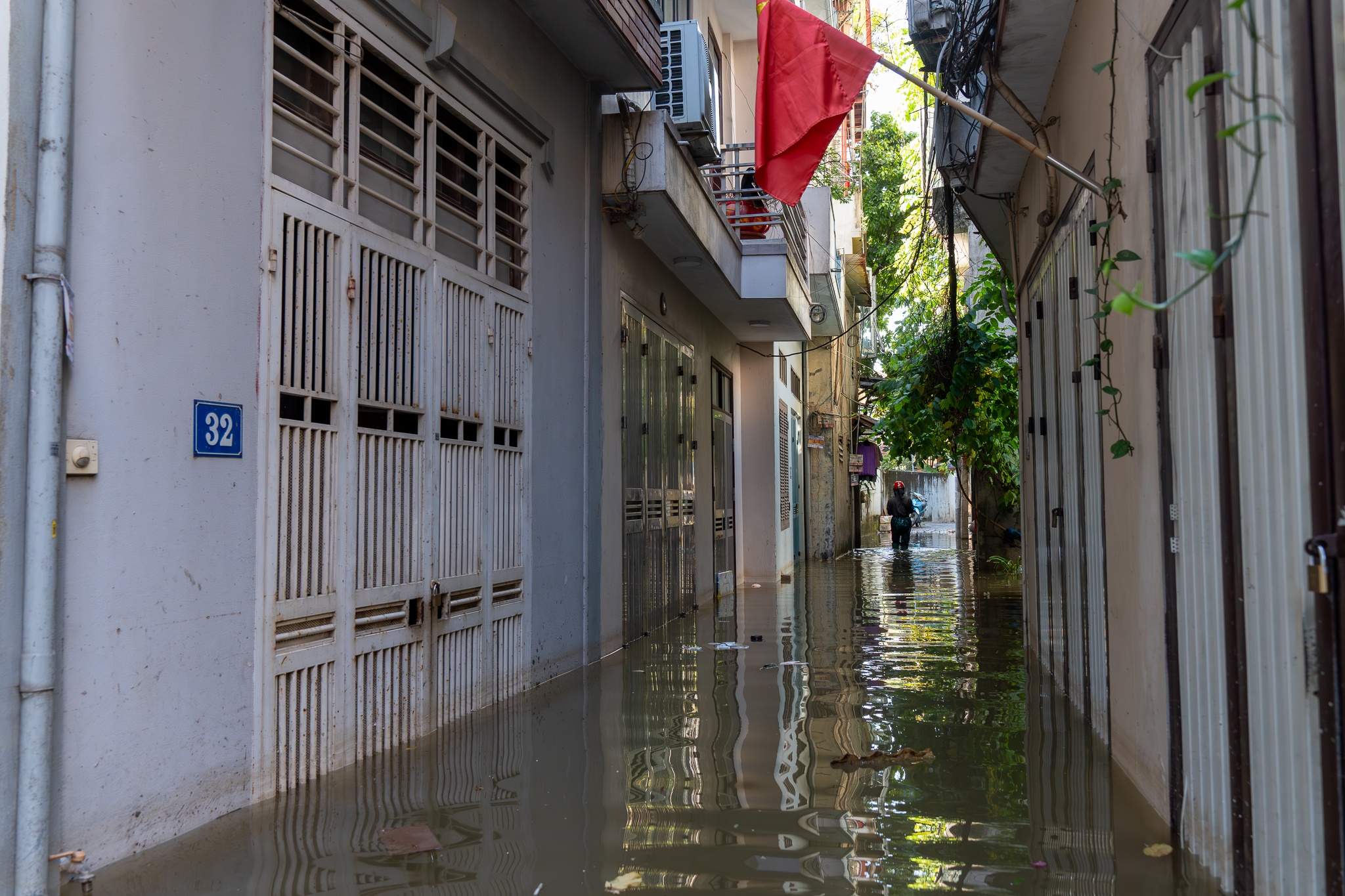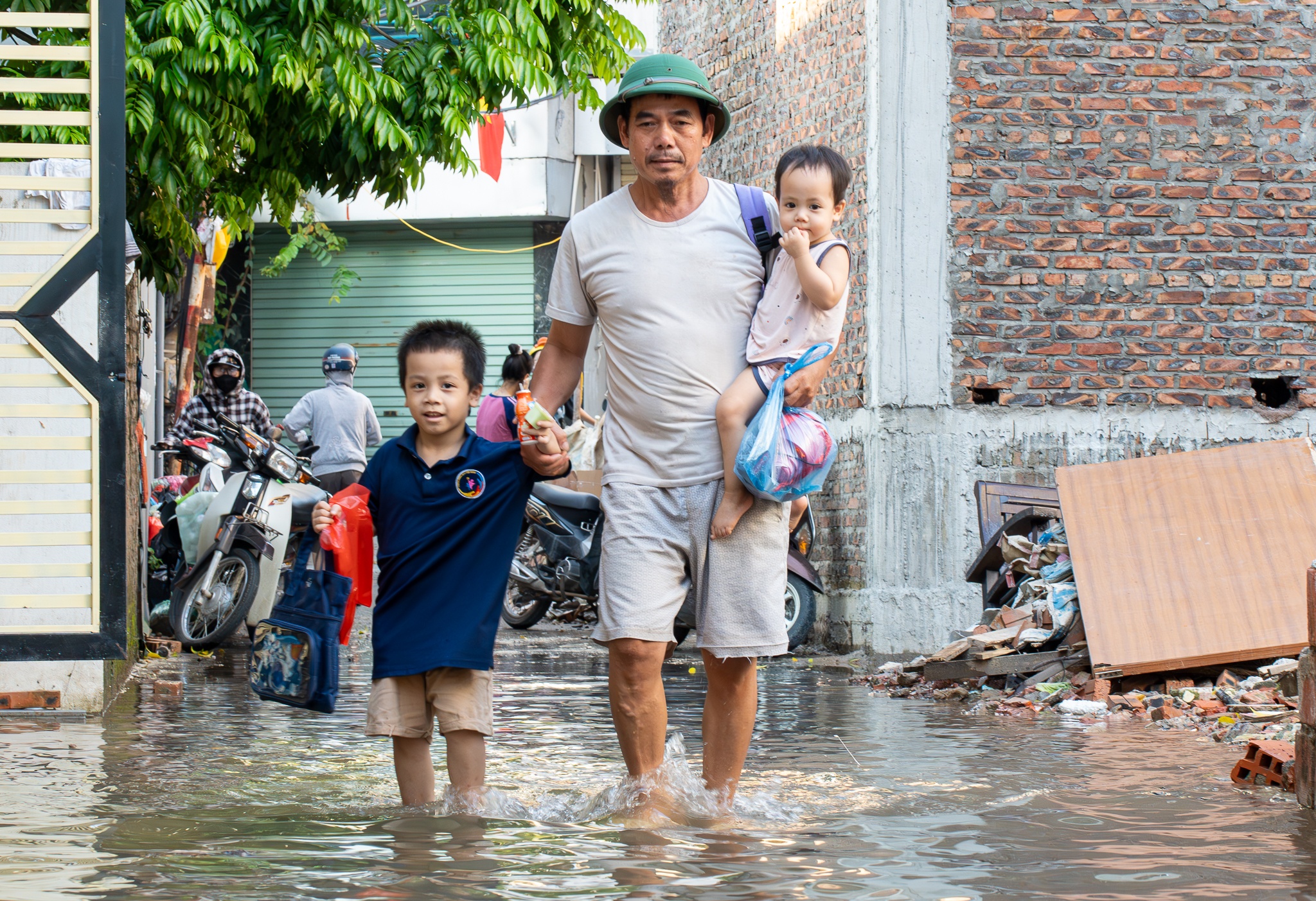 6 ngày sau đợt mưa lớn do ảnh hưởng của bão số 10 (Bualoi), khu vực làng Miêu Nha (Phường Xuân Phương, Hà Nội) vẫn chìm trong biển nước. Hơn 300 hộ dân bị cô lập trong cảnh không điện, không nước sạch.