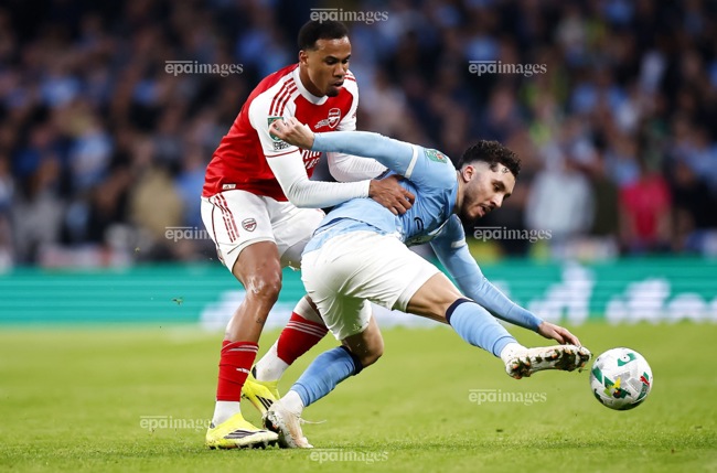 Gabriel Magalhaes bị chấn thương ở trận thua Man City 0-2. Ảnh: EPA.