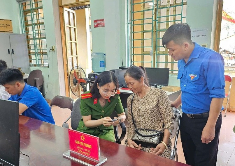 Đoàn viên, thanh niên xã Canh Tân hướng dẫn người dân thi.