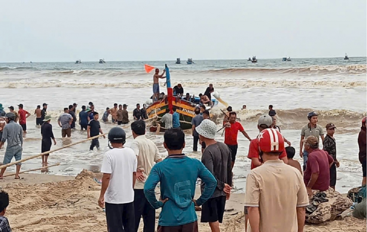 Lực lượng chức năng đã tổ chức tuyên truyền, hướng dẫn người dân, các phương tiện không ra vào cửa biển trong điều kiện thời tiết nguy hiểm; tiếp tục duy trì lực lượng tham gia hỗ trợ trục vớt các phương tiện bị chìm và động viên tinh thần các gia đình có phương tiện bị nạn.