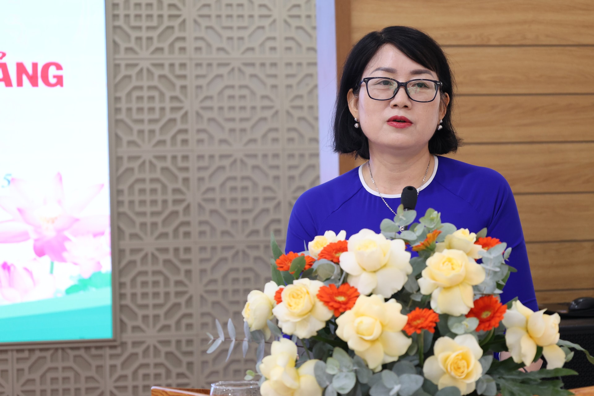 Phó Bí thư Đảng ủy các cơ quan Đảng tỉnh Lê Thị Hải Duyên phát biểu khai giảng lớp bồi dưỡng