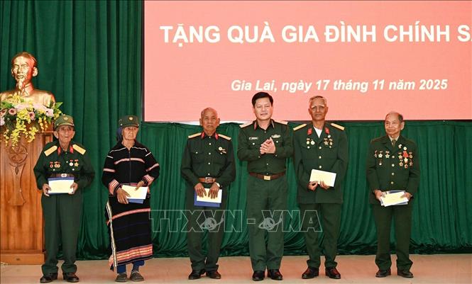 Trước đó, chiều 17/11, Ban Chỉ đạo Hội thảo đã tổ chức Lễ dâng hương tưởng niệm các Anh hùng liệt sĩ tại Nghĩa trang liệt sĩ tỉnh Gia Lai và trao tặng quà cho các gia đình chính sách, người có công với cách mạng, tặng hoa tri ân các nhân chứng lịch sử, tạo không khí trang trọng, ấm áp và mang ý nghĩa giáo dục, tri ân sâu sắc.