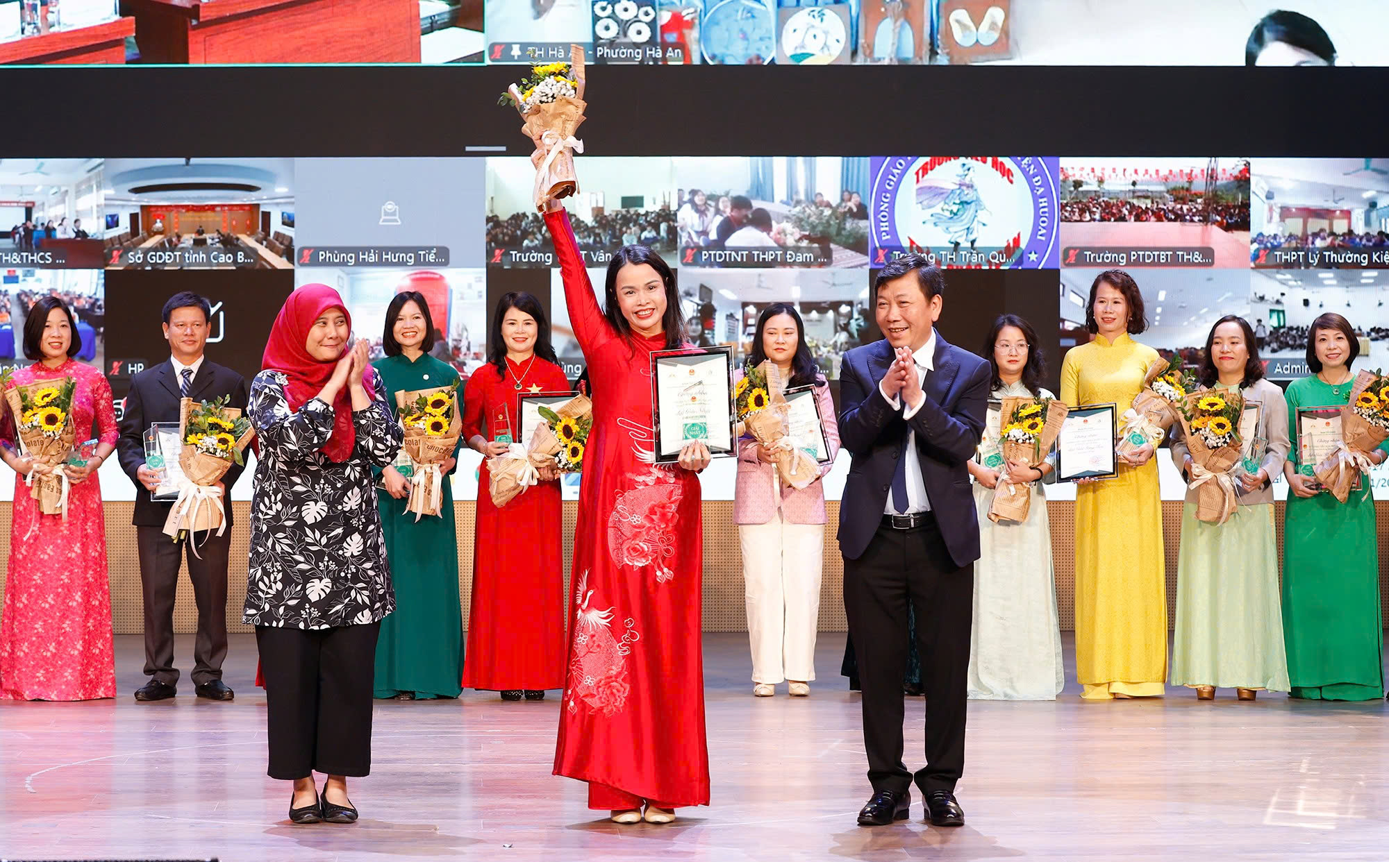 Đại diện các nhà trường lên nhận Giải thưởng Trường học sinh thái ASEAN Việt Nam năm 2025.