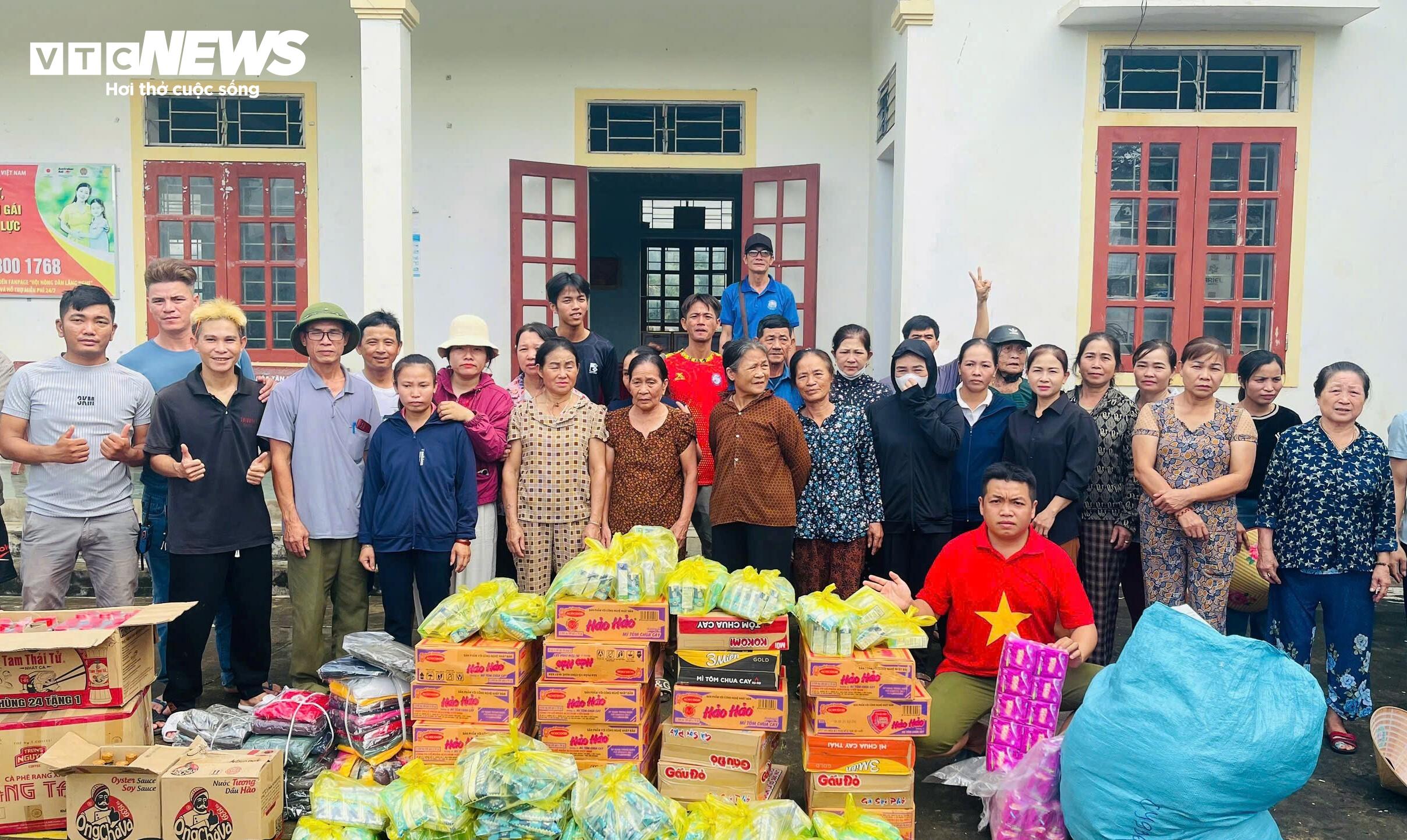 Những chuyến xe của nhóm anh Nguyễn Văn Sáng (phường Quy Nhơn Đông, tỉnh Gia Lai) mang theo hơn 5 tấn nhu yếu phẩm gồm gạo, mỳ tôm, bánh, sữa, nước uống và các vật dụng thiết yếu đến với bà con các vùng lũ.