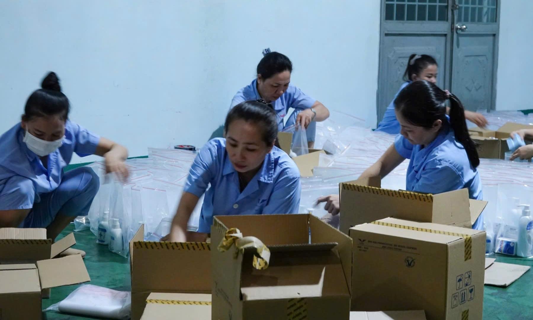Hàng hóa, thuốc thiết yếu được đóng gói trong đêm 9/10. Ảnh: VGP