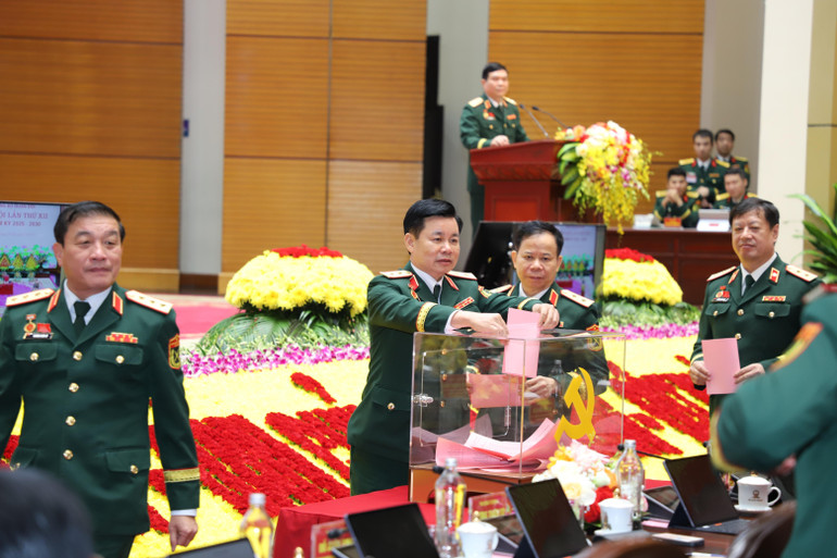 Buổi chiều, dưới sự điều hành của Đại tướng Nguyễn Tân Cương, Ủy viên Trung ương Đảng, Ủy viên Thường vụ Quân ủy Trung ương, Tổng Tham mưu trưởng Quân đội nhân dân Việt Nam, Thứ trưởng Quốc phòng, các đại biểu đã thực hiện bỏ phiếu bầu 3 đại biểu dự khuyết tham gia Đoàn đại biểu Đảng bộ Quân đội dự Đại hội đại biểu toàn quốc lần thứ XIV của Đảng.