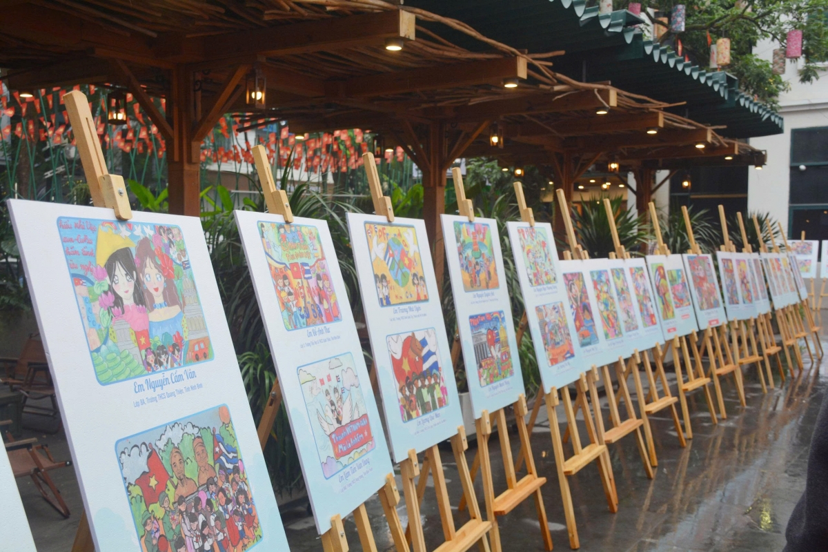 Các bức tranh do thiếu nhi Việt Nam vẽ về mối quan hệ thủy chung gắn bó giữa Việt Nam và Cuba. Ảnh: QĐND