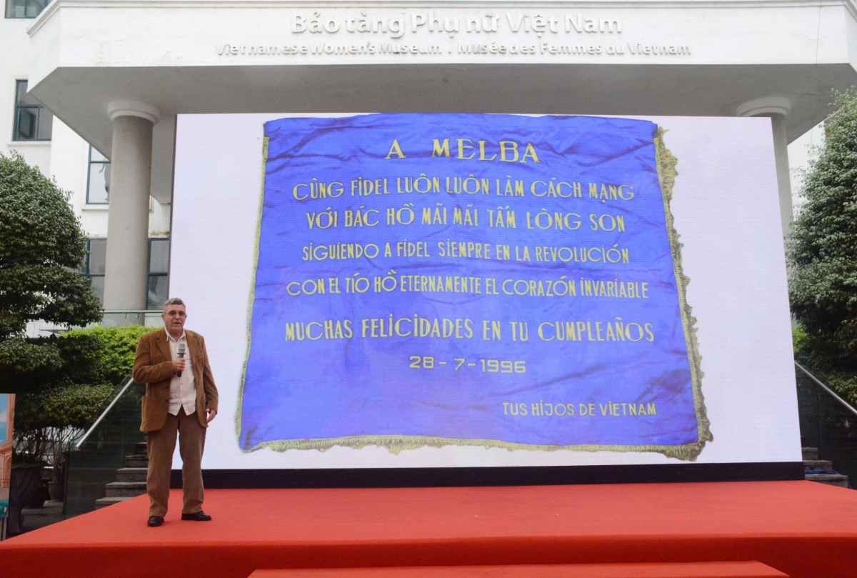 Lễ tiếp nhận hiện vật là bức trướng, kỷ vật đến từ gia đình bà Melba Hernández Rodríguez