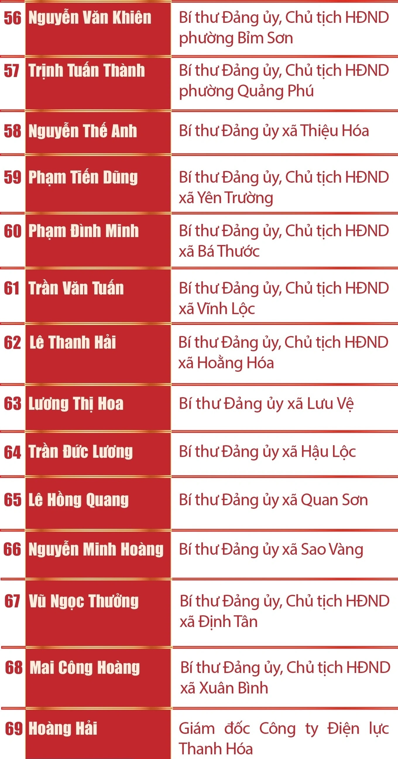 Dưới đây là Danh sách Ban Chấp hành Đảng bộ tỉnh Thanh Hóa Khóa XX: