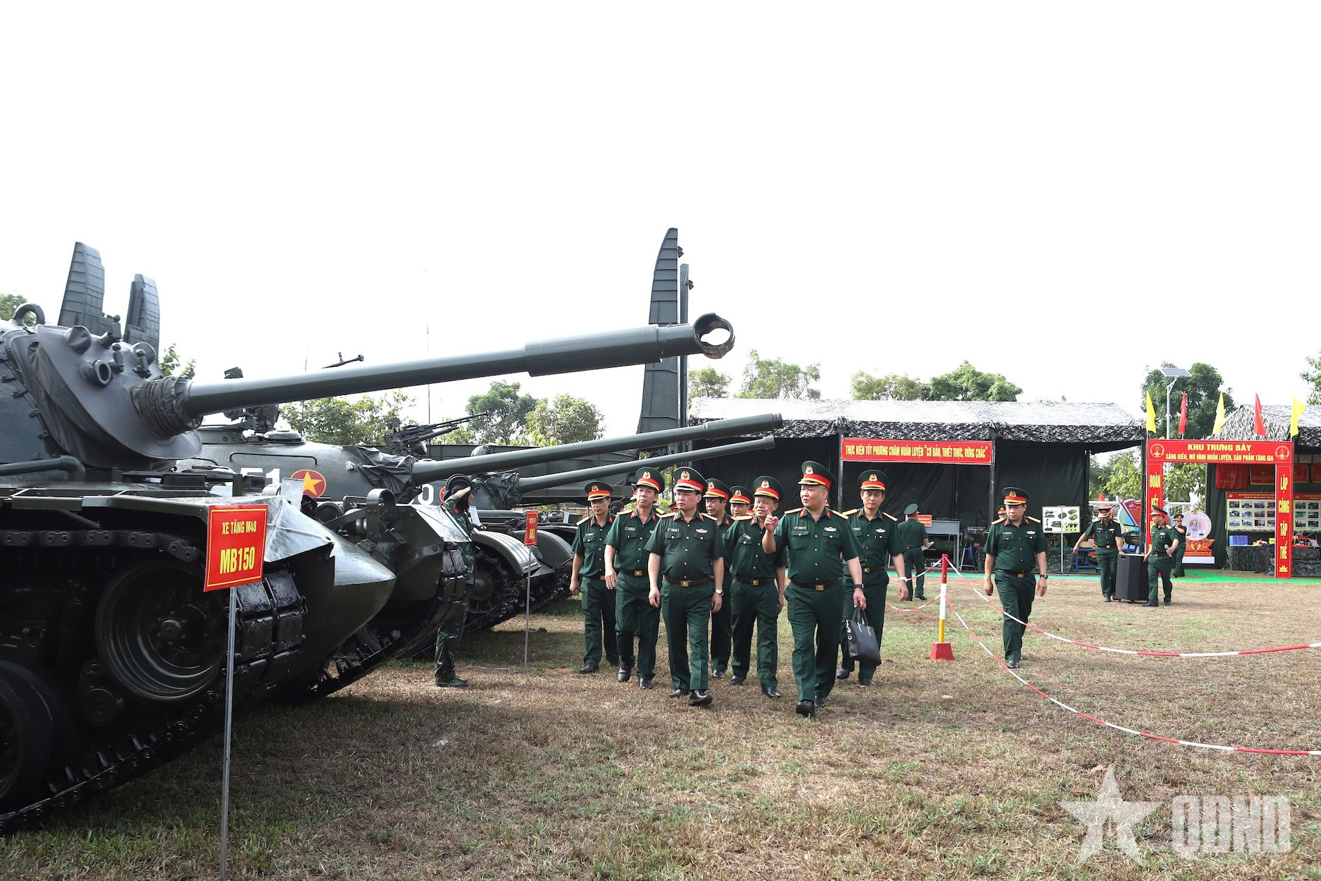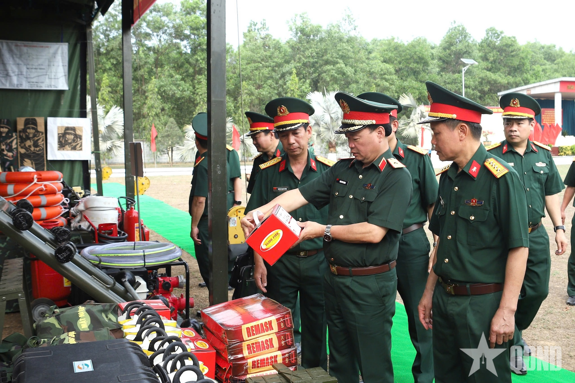 Các đồng chí đại biểu tham quan trang bị kỹ thuật phục vụ công tác huấn luyện.