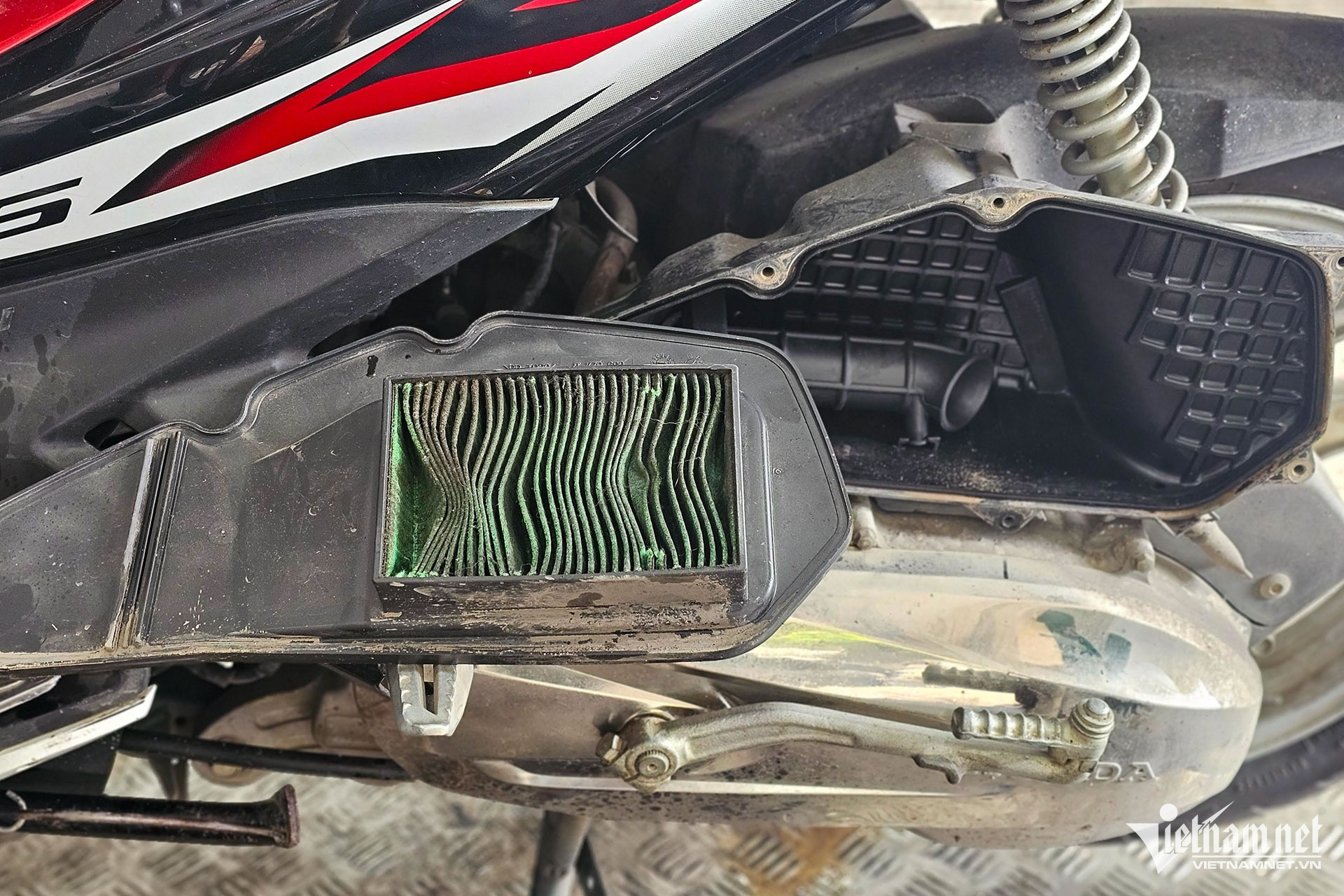 Lọc gió trên xe máy, đặc biệt ở xe tay ga, thường đặt thấp nên rất dễ bị ngấm nước. Lọc gió ướt khiến lượng không khí nạp vào giảm, làm xe khó nổ, hao xăng, có khói đen và thậm chí chết máy giữa đường.