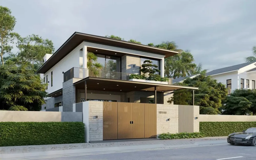 Các vật liệu này tạo nên vẻ đẹp sang trọng mà không gây cảm giác nặng nề cho ngôi nhà. Đặc biệt, nếu nhà mái Nhật ba tầng có thiết kế sân trước rộng, gia chủ có thể bố trí cổng 2 cánh lớn hoặc cổng chính - phụ.