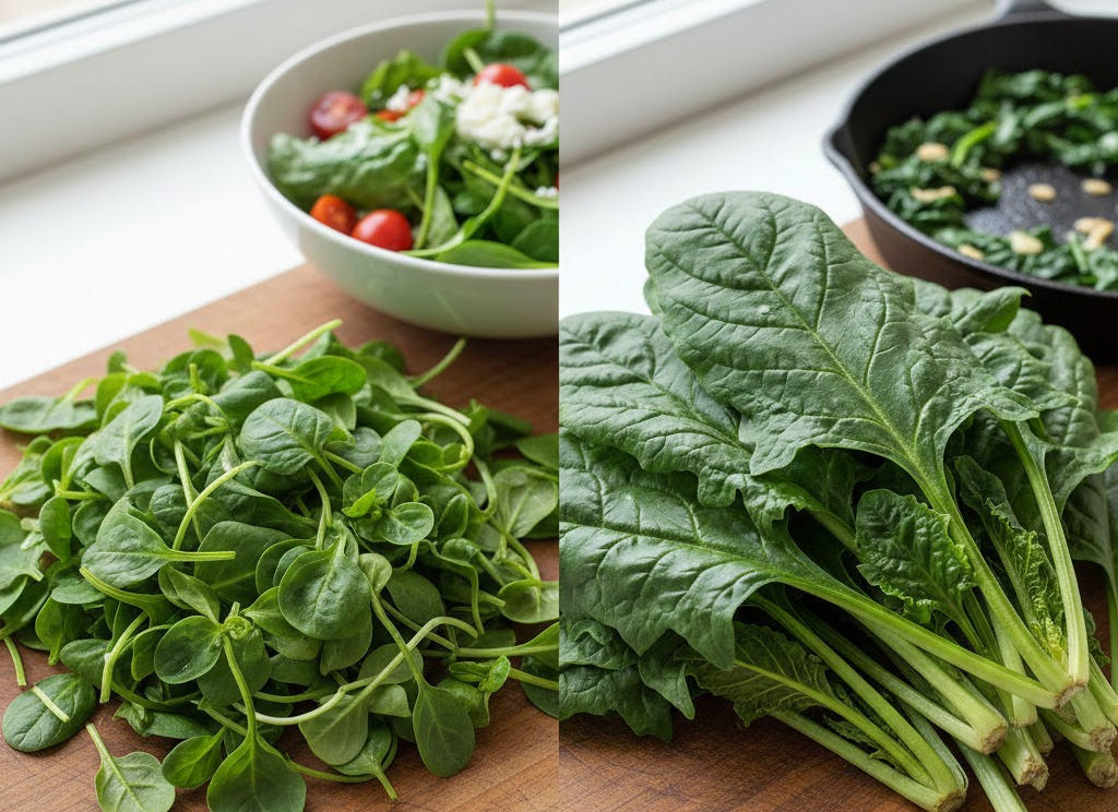 Rau bina trưởng thành: Có lá lớn hơn, dày hơn và cuống dai. Loại này thường có vị đậm đà, hơi đắng nhẹ và chứa nhiều chất xơ hơn, cực kỳ lý tưởng cho các món xào, nấu súp hoặc hầm.