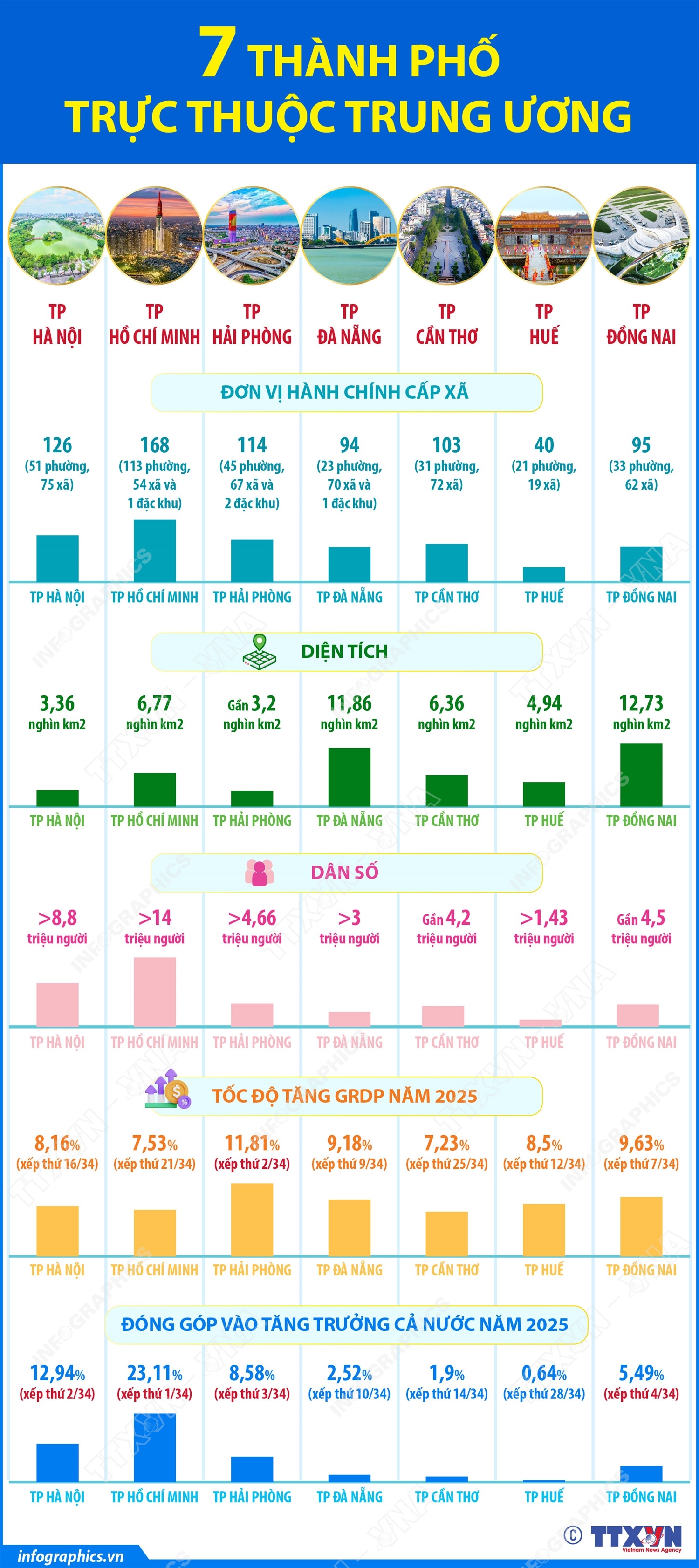 Chủ tịch Quốc hội Trần Thanh Mẫn đã ký chứng thực Nghị quyết số 30/2026/QH16 về việc thành lập thành phố Đồng Nai trên cơ sở toàn bộ diện tích tự nhiên và quy mô dân số của tỉnh Đồng Nai từ ngày 30/4/2026. Như vậy, kể từ ngày 30/4/2026, Việt Nam có 7 thành phố trực thuộc Trung ương bao gồm: Hà Nội, Thành phố Hồ Chí Minh, Hải Phòng, Đà Nẵng, Cần Thơ, Huế và Đồng Nai. Các thành phố này giữ vai trò đô thị đặc biệt hoặc loại I, trung tâm kinh tế, chính trị, văn hóa lớn của cả nước.
