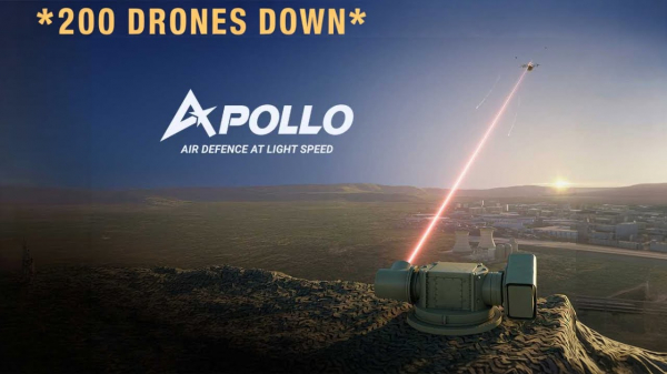 Tháng 9/2025, công ty Electro Optic Systems (EOS) của Úc đã đưa ra giới thiệu một loại vũ khí laser năng lượng cao có tên Apollo để vô hiệu hóa máy bay không người lái bầy đàn thuộc mọi kích cỡ bằng cách làm gián đoạn các cảm biến của chúng. Tạo ra công suất 100 kilowatt (có thể mở rộng lên 150) và cung cấp phạm vi phủ sóng thẳng đứng 360 độ, Apollo có thể hoạt động liên tục khi được kết nối với nguồn điện bên ngoài hoặc thực hiện hơn 200 lần tấn công ở chế độ độc lập.