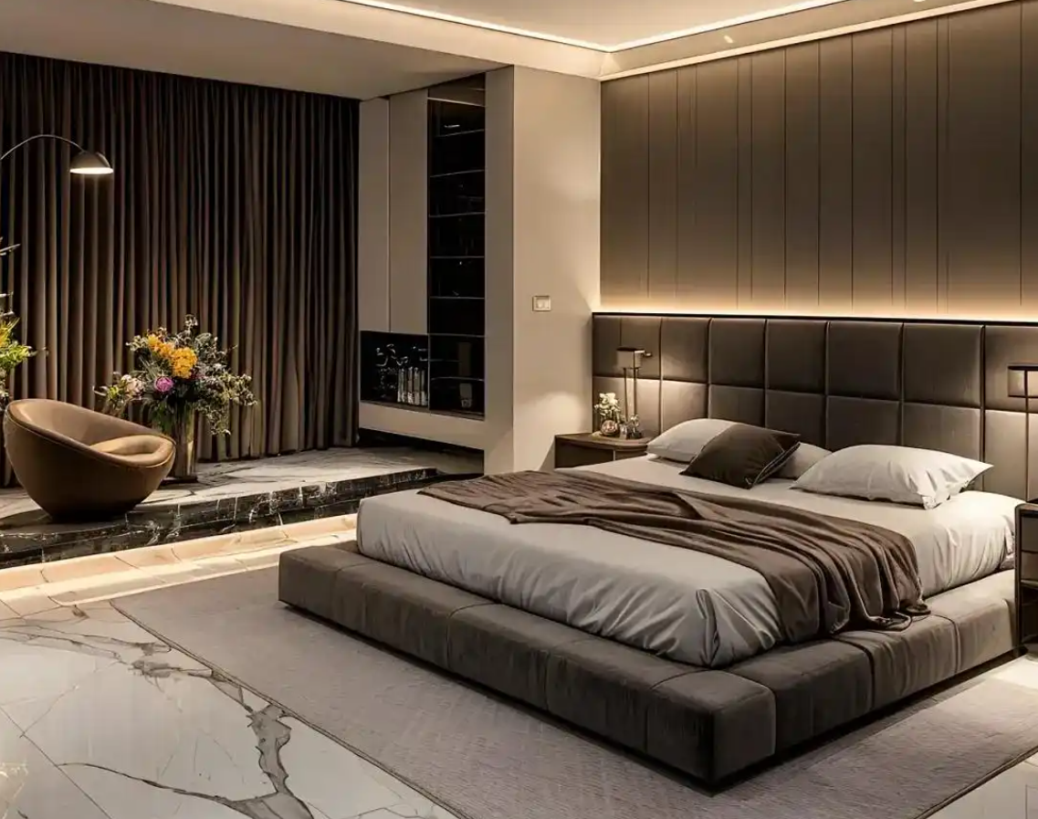 Giường ngủ là tâm điểm năng lượng của phòng. Trong quan niệm Á Đông, giường không nên đặt đối diện cửa ra vào hoặc gương soi bởi điều này vừa gây mất riêng tư, vừa khiến người nằm có cảm giác bị “nhìn”, ảnh hưởng tới giấc ngủ sâu.