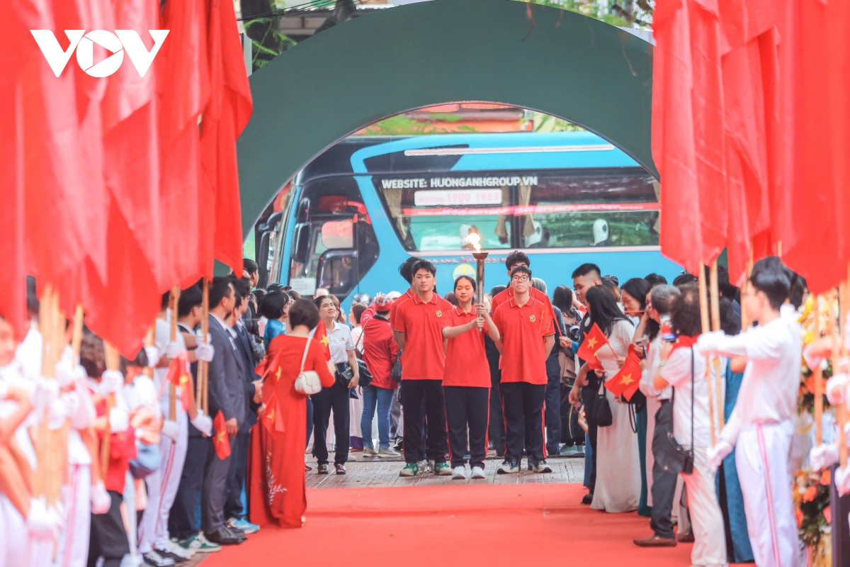 Đặc biệt, em Đỗ Hà Phương vừa giành giải Nhì tại Cuộc thi Khoa học Kỹ thuật Quốc tế (ISEF) 2025, được vinh dự rước ngọn đuốc truyền thống - biểu tượng cho tri thức, trí tuệ và bản sắc Việt Đức. Ngọn đuốc ấy là lời khẳng định tinh thần đổi mới, ý chí vươn lên và niềm tin tiếp bước của các thế hệ thầy trò.