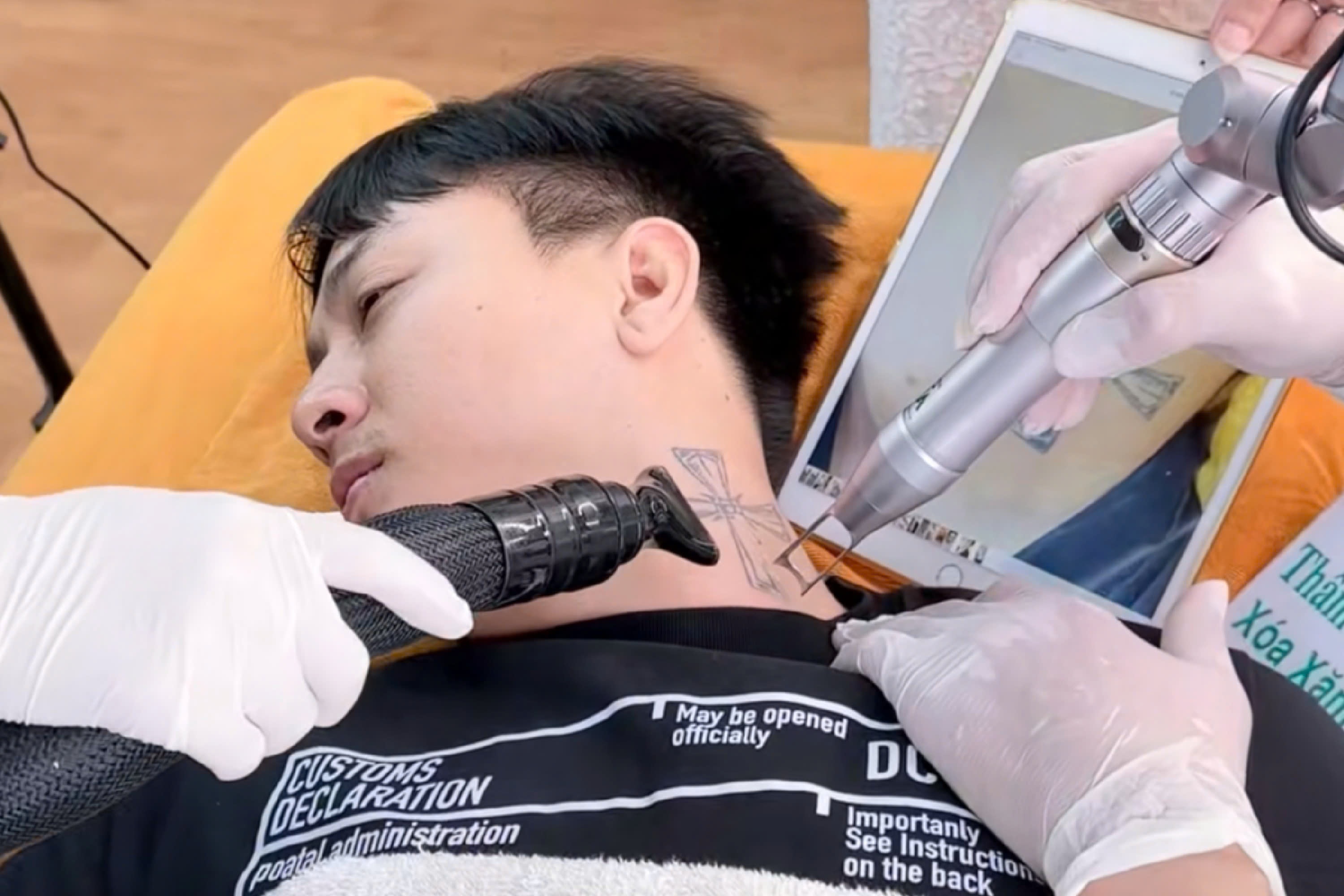Hình ảnh Hoài Lâm xóa xăm gây chú ý.