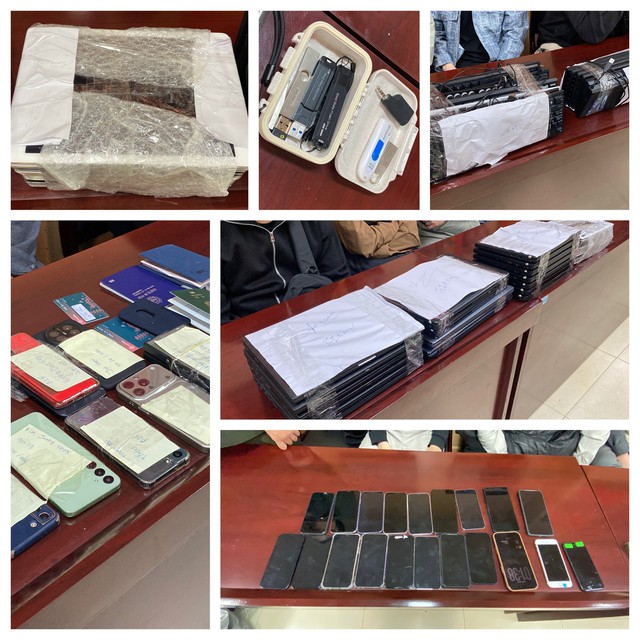 Cơ quan công an đã thu giữ 17 máy tính xách tay, 14 máy tính bảng và 25 điện thoại di động, được xác định là phương tiện phục vụ hoạt động lừa đảo trên không gian mạng.