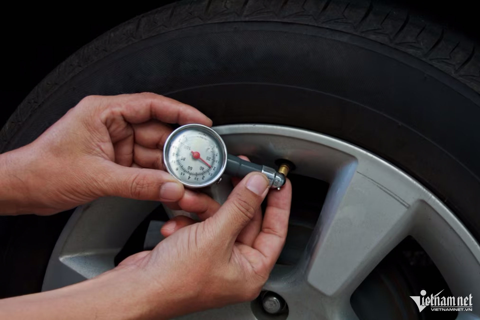 Sau khi xe dừng dỗ trên 3 tiếng, việc đo áp suất mới thực sự chính xác. Ảnh: Ngô Minh