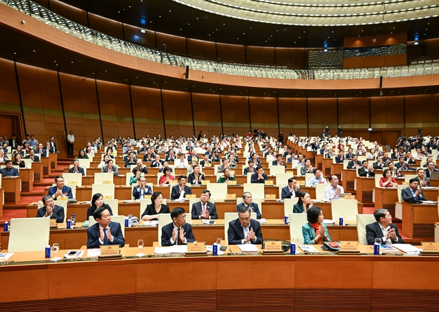 Tổng Bí thư Tô Lâm; Chủ tịch nước Lương Cường; Chủ tịch Quốc hội, Chủ tịch Hội đồng bầu cử quốc gia Trần Thanh Mẫn; Thường trực Ban Bí thư Trần Cẩm Tú cùng các đại biểu tham dự Hội nghị - Ảnh: Quang Vinh