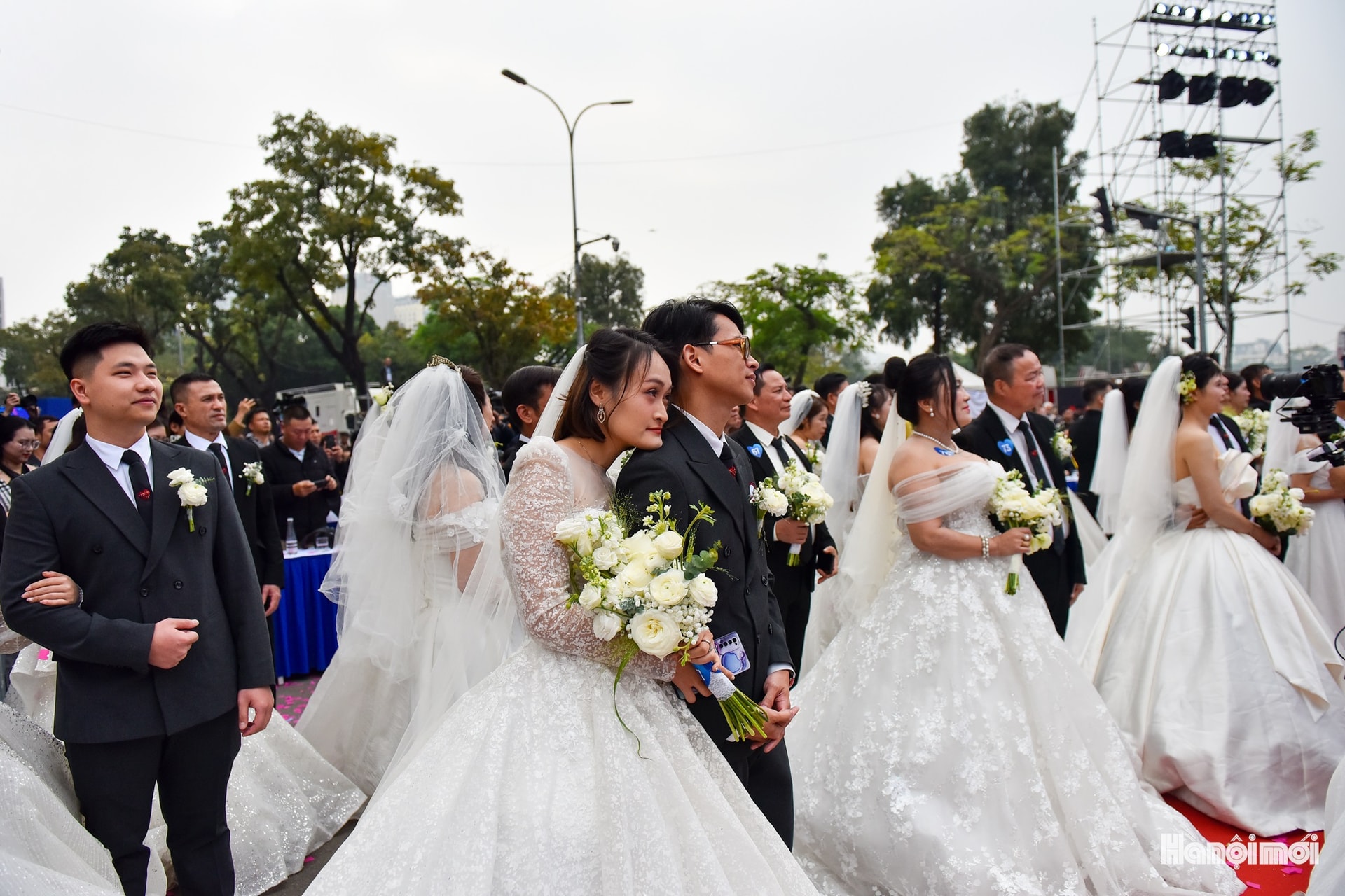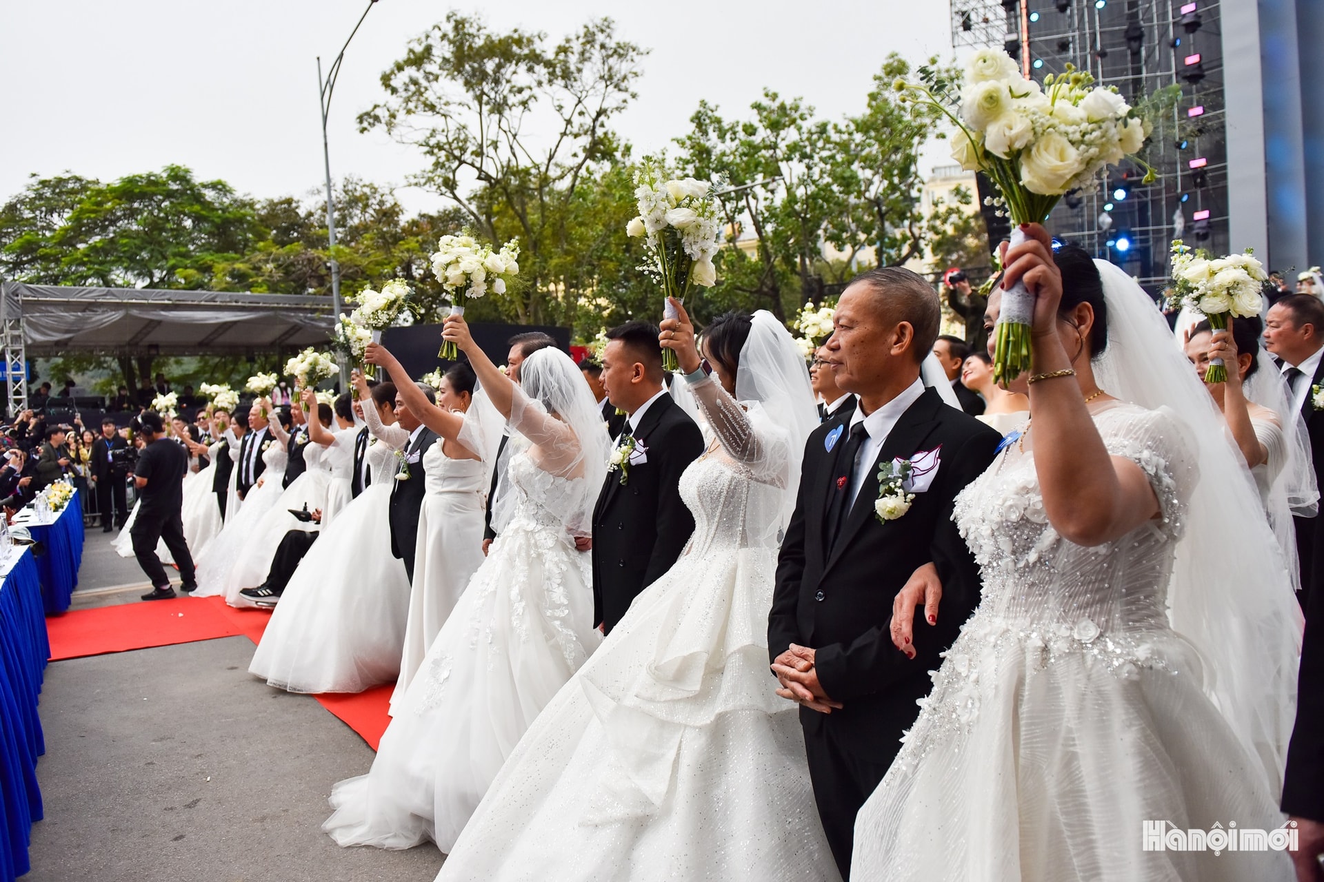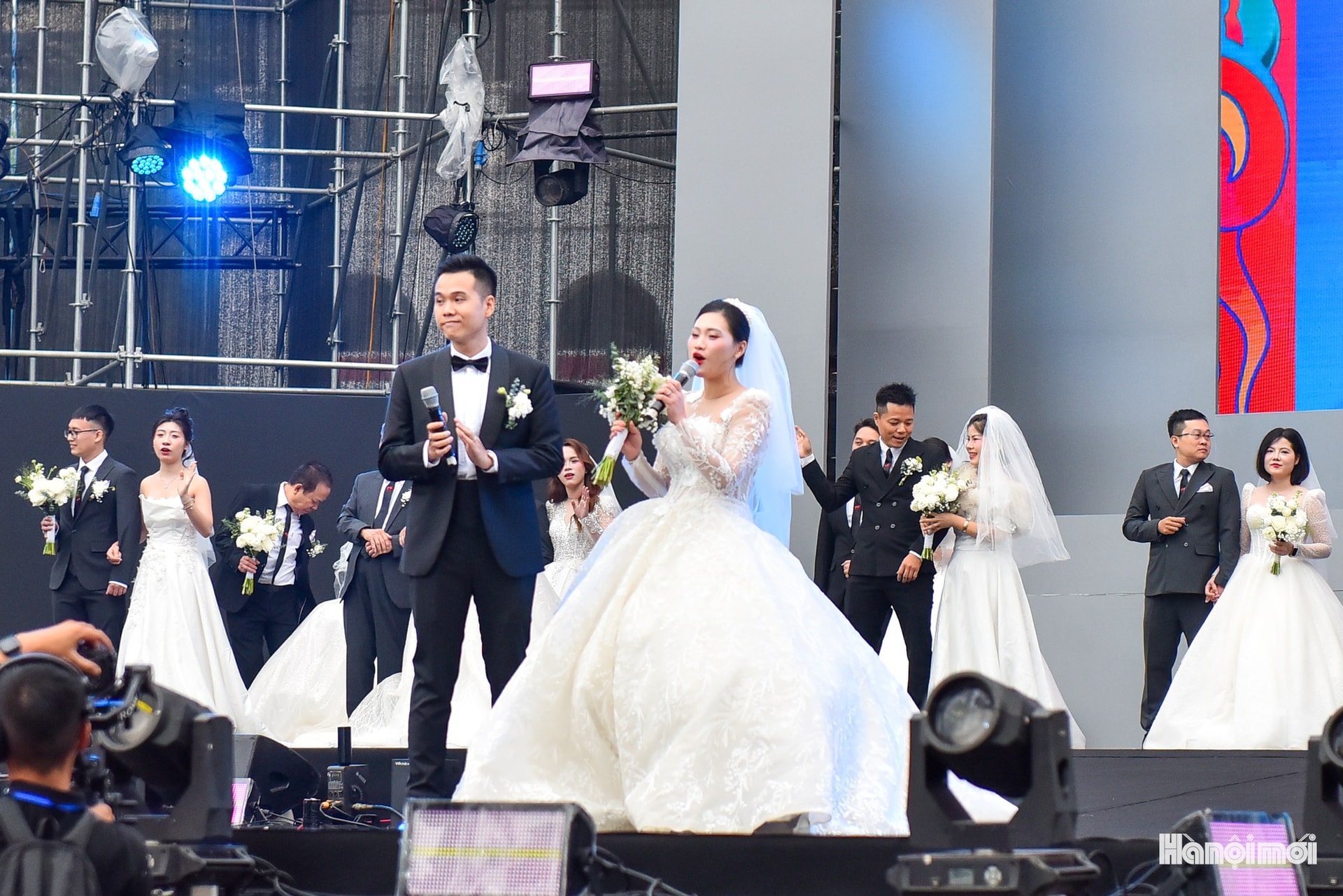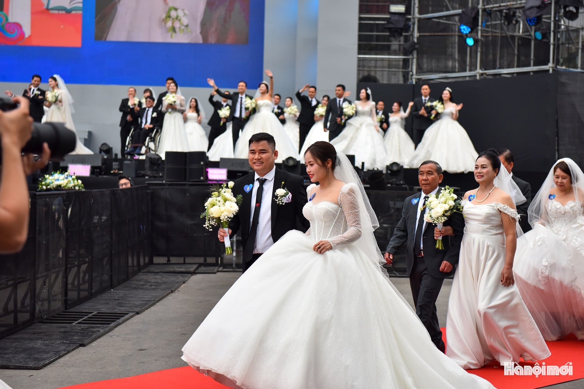 Các cặp đôi bước vào khu vực lễ cưới trong tiếng vỗ tay chúc mừng của đông đảo người dân tham dự Ngày hội Việt Nam hạnh phúc 2025.