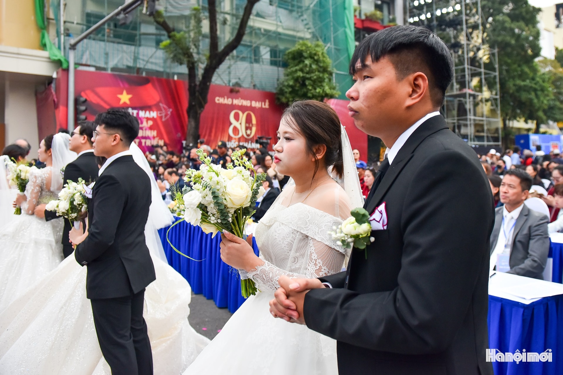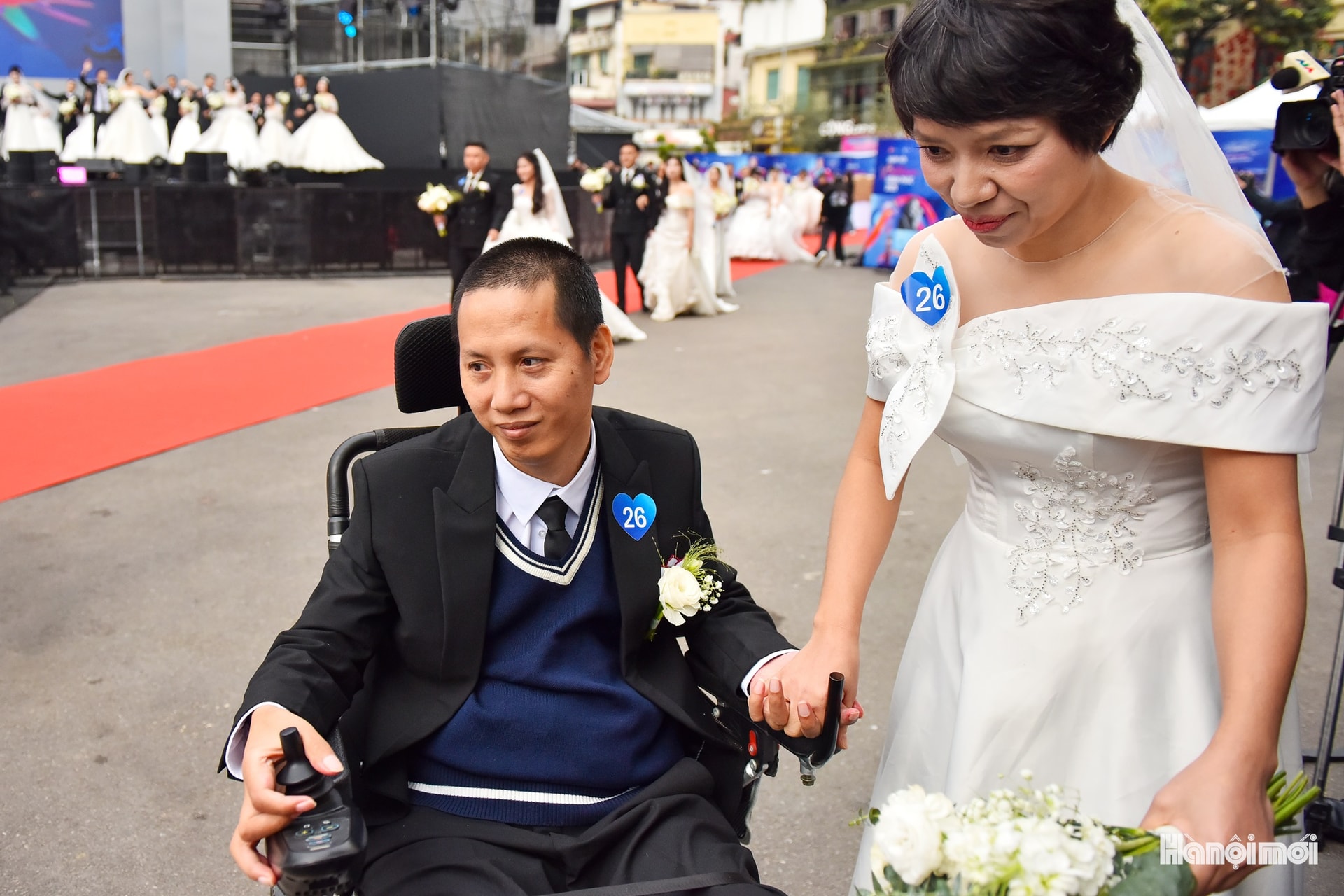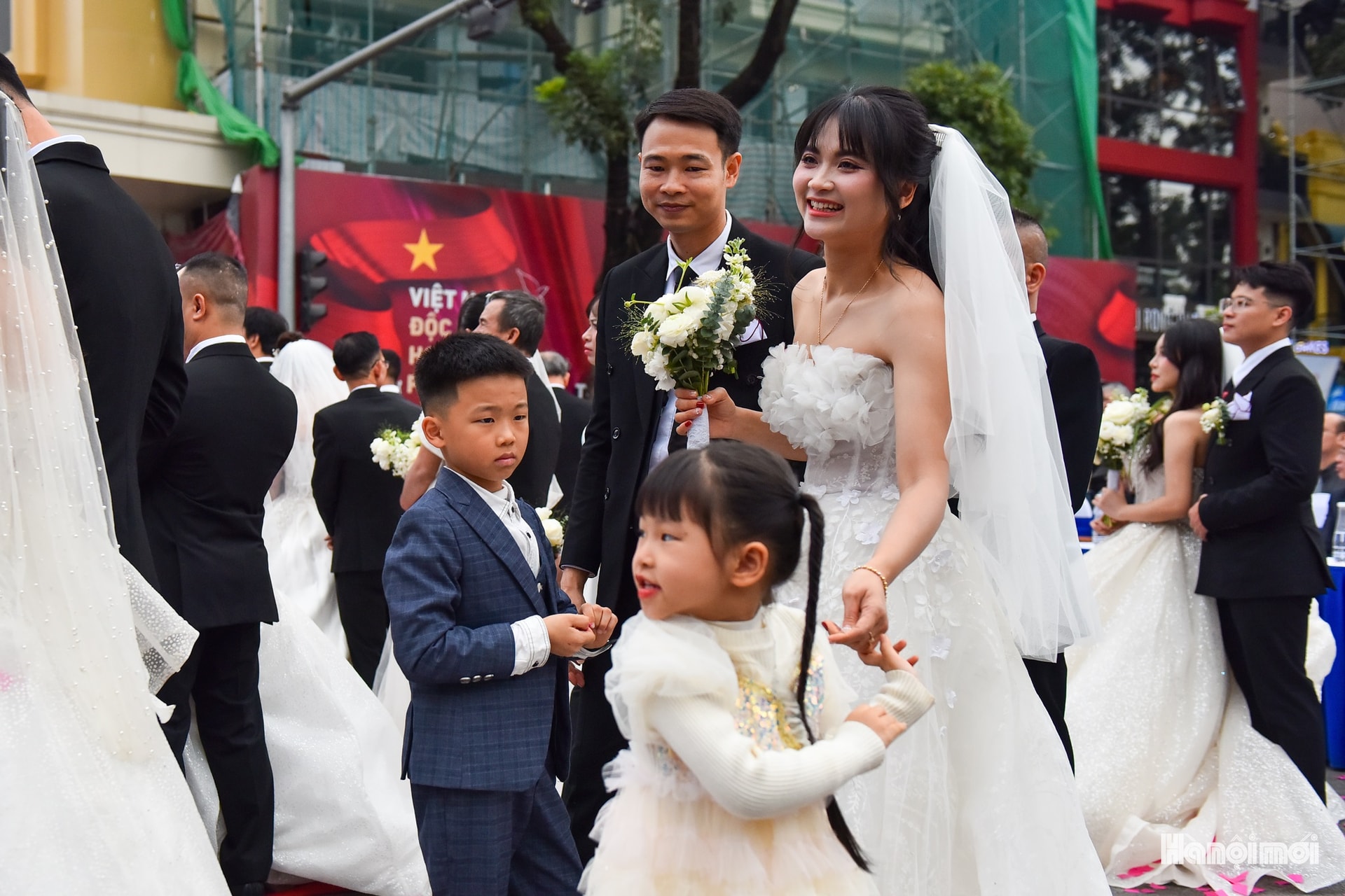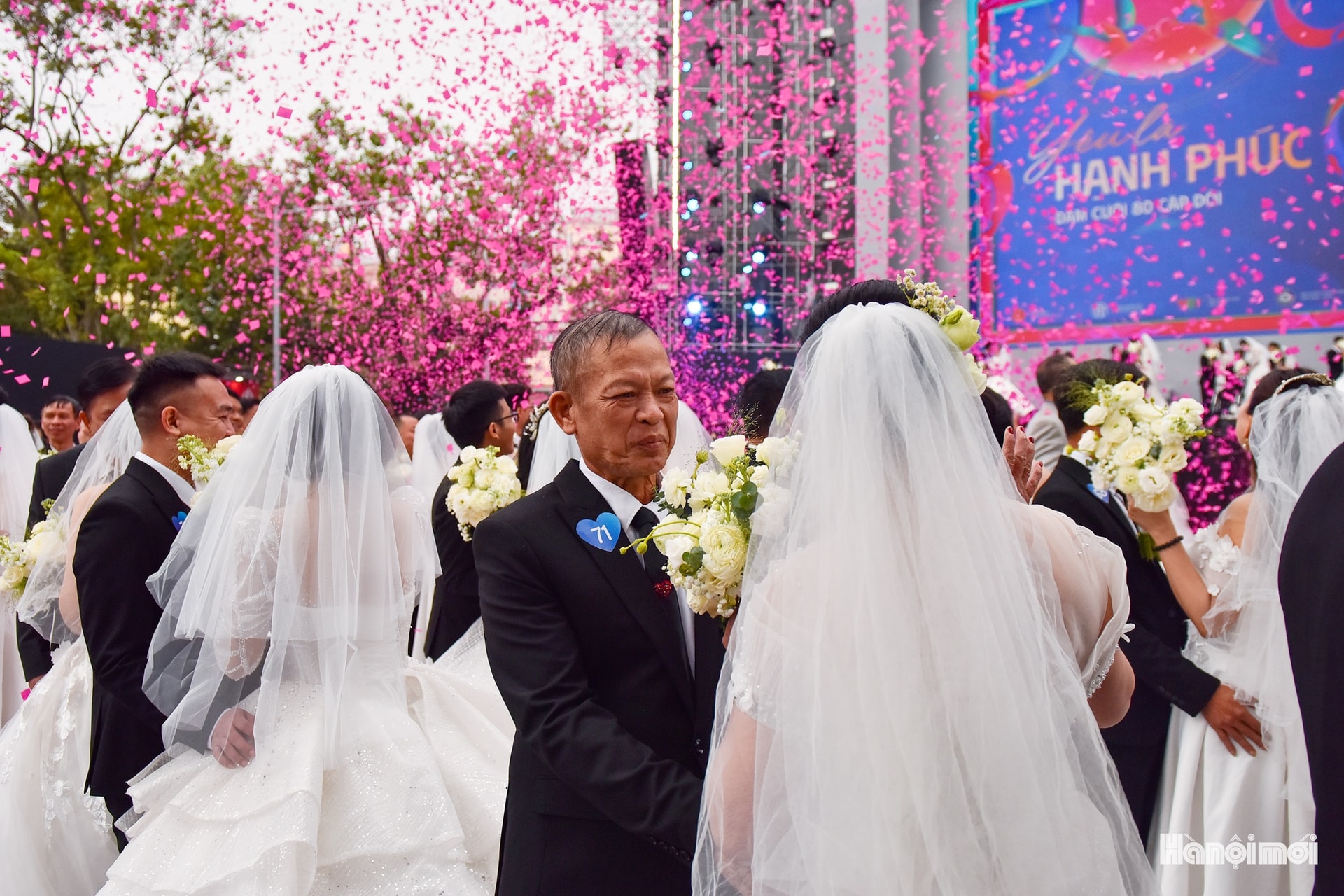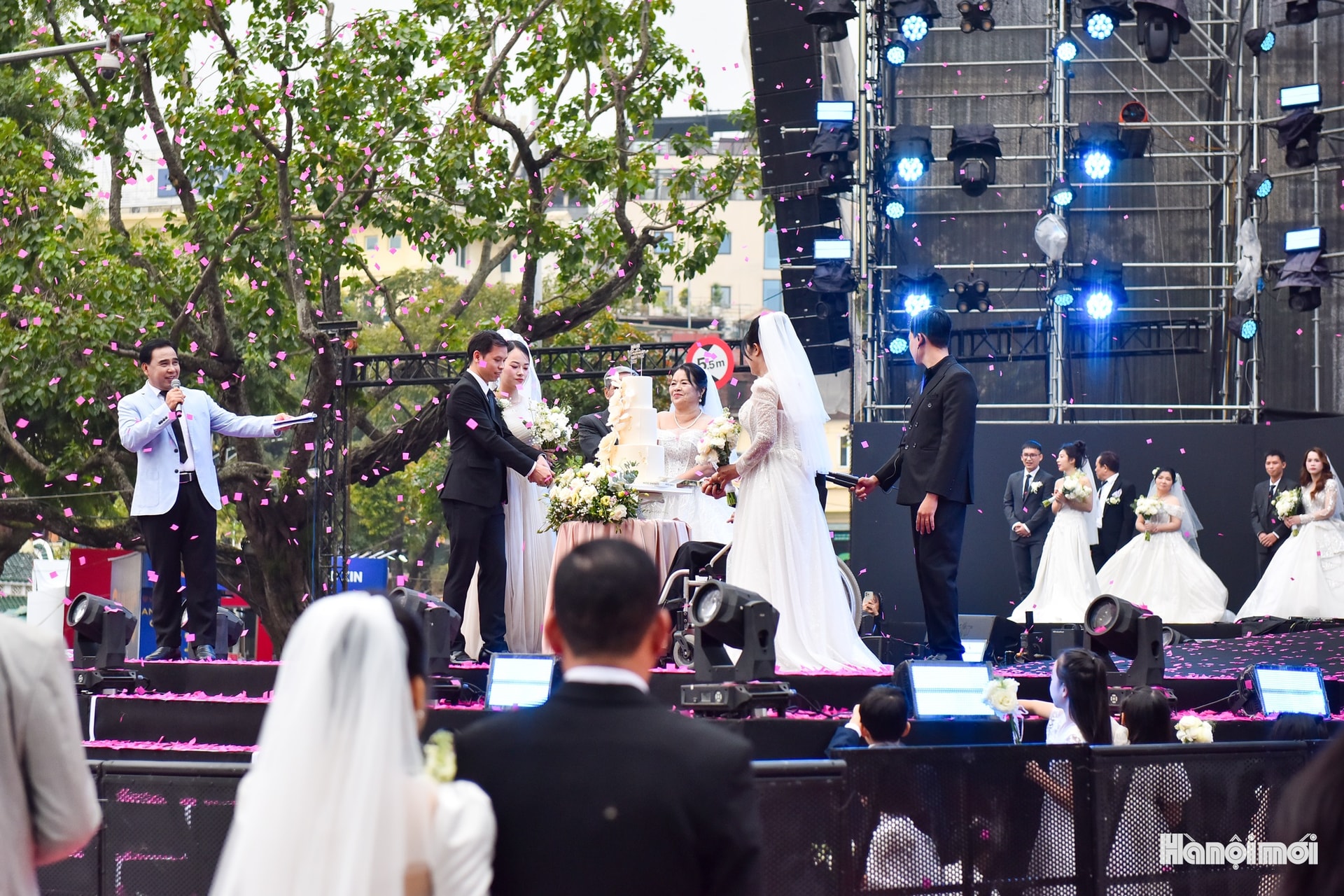 Các cặp đôi bước vào khu vực lễ cưới trong tiếng vỗ tay chúc mừng của đông đảo người dân tham dự Ngày hội Việt Nam hạnh phúc 2025.