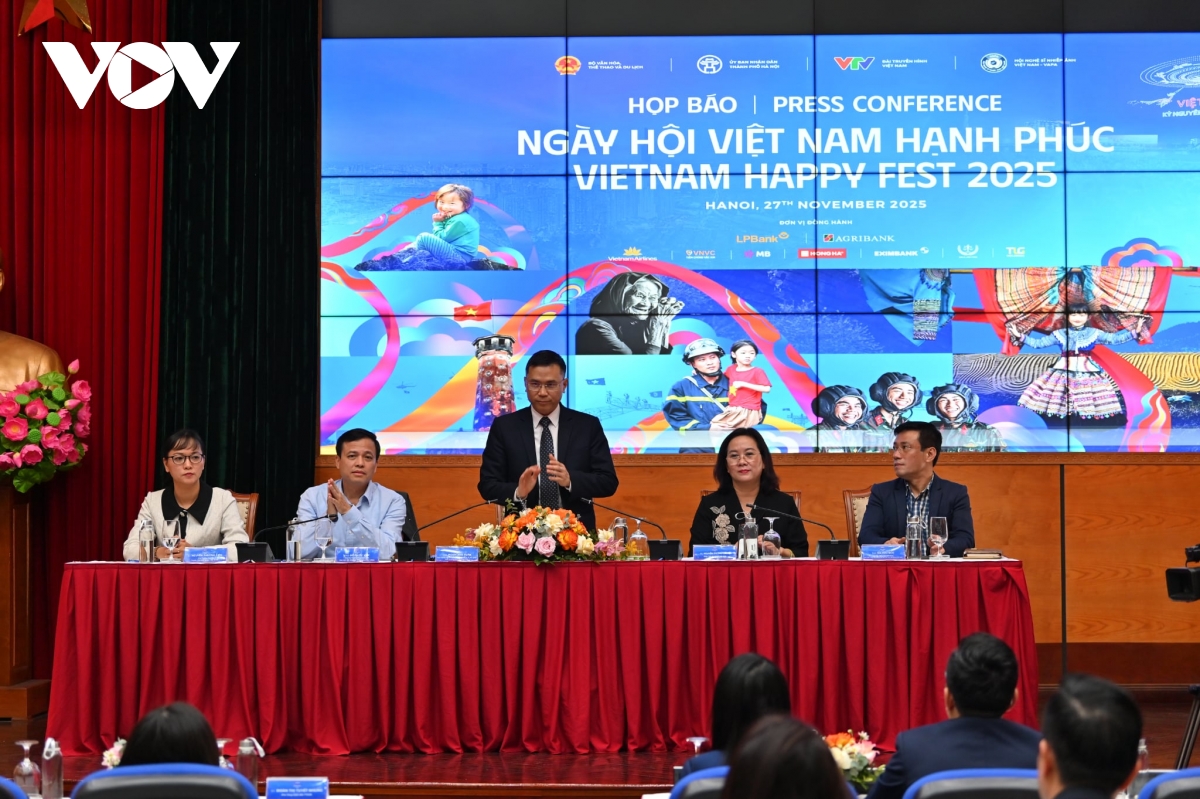 Tại buổi họp báo chiều 27/11 ở Hà Nội, ông Phạm Anh Tuấn, Cục trưởng Cục Thông tin cơ sở và Thông tin đối ngoại (Bộ Văn hóa, Thể thao và Du lịch), cho biết: “Ngày hội Việt Nam hạnh phúc - Vietnam Happy Fest 2025 sẽ chính thức diễn ra, lan tỏa thông điệp về một Việt Nam ‘Độc lập - Tự do - Hạnh phúc’. Không chỉ là một sự kiện cộng đồng, ngày hội được thiết kế như một hành trình khám phá hạnh phúc, nơi mỗi người có thể tìm lại ký ức gia đình, sẻ chia những khoảnh khắc yêu thương và cảm nhận sự kết nối thiêng liêng giữa con người với con người”.