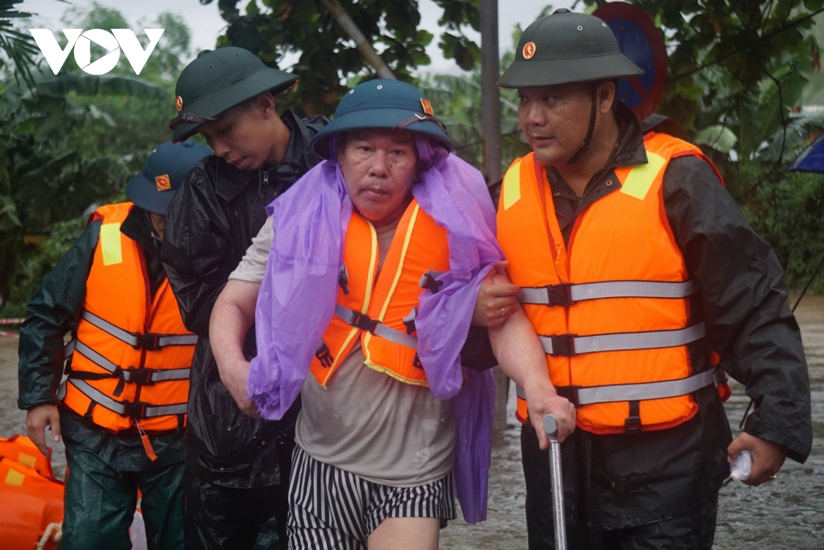 Bộ đội giúp dân sơ tán tránh bão, lũ.