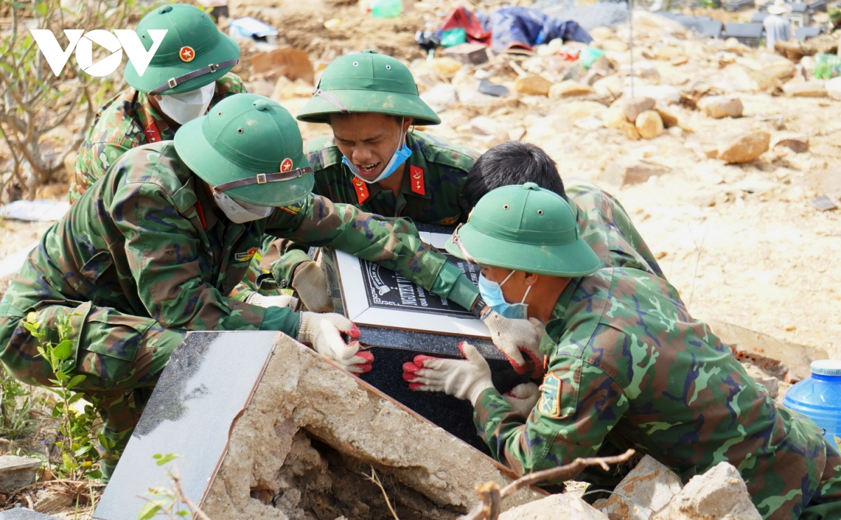 Bộ đội sửa chữa từng phần mộ tại nghĩa trang Hòa Sơn (Đà Nẵng)