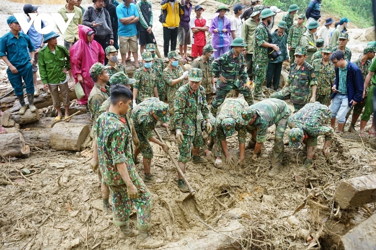 Bộ đội Quân khu 5 tìm kiếm nạn nhân mất tích trong vụ sạt lở đất tại Trà Leng, huyện miền núi cao Nam Trà My, tỉnh Quảng Nam (cũ) năm 2020