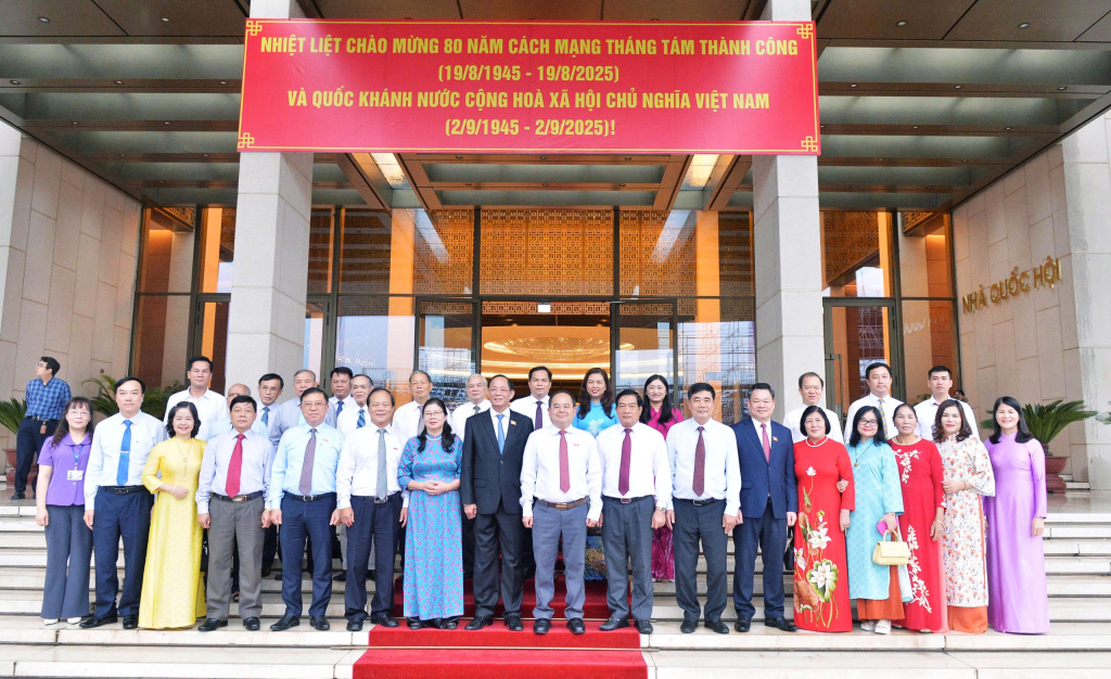 Các thế hệ đại biểu Quốc hội thuộc Đoàn đại biểu Quốc hội tỉnh chụp ảnh với lãnh đạo Quốc hội, tháng 8/2025.
