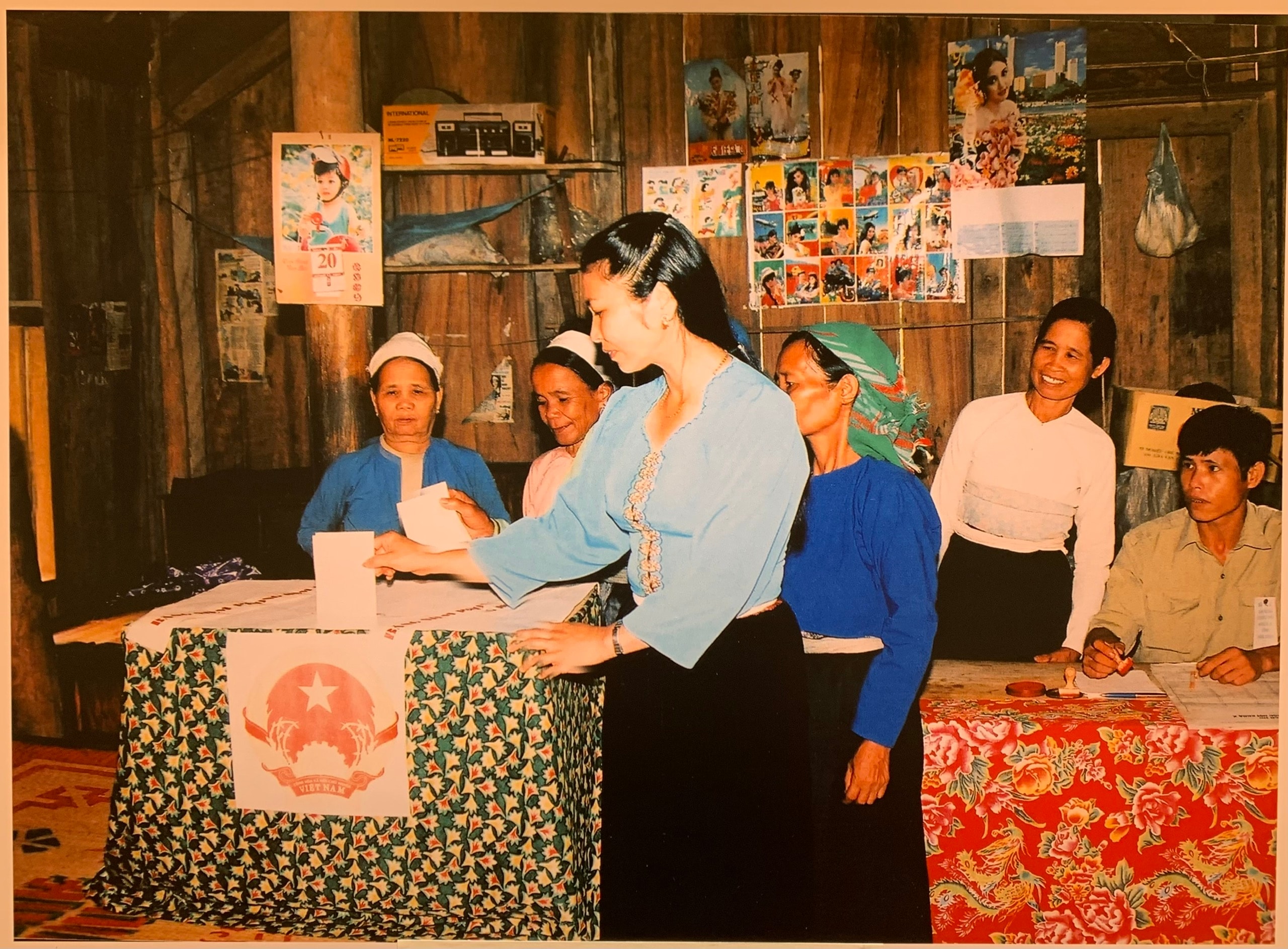 Cử tri dân tộc Mường, tỉnh Hòa Bình (cũ) tham gia bầu cử đại biểu Quốc hội Khóa X, tháng 7/1997. Nguồn: VPQH