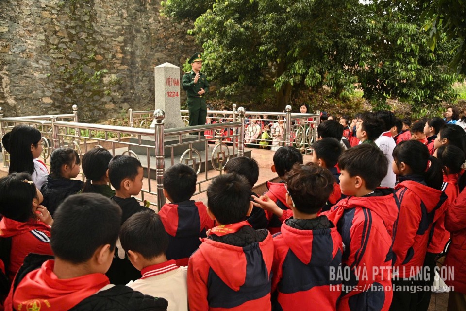 Trong khuôn khổ chương trình, các em học sinh còn được tham quan cột mốc 1224 thuộc Đồn Biên phòng Cửa khẩu Chi Ma quản lý.