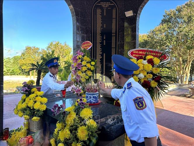 Cán bộ, chiến sĩ Bộ Tư lệnh Vùng Cảnh sát biển 4 dâng hương tại Di tích lịch sử tượng đài Nắm Đấm, đặc khu Phú Quốc. Ảnh: TTXVN phát