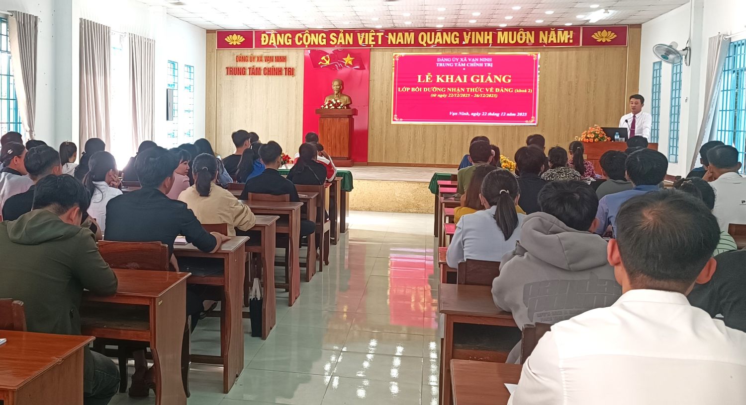 Từ ngày 22 đến 26-12, Trung tâm Chính trị xã Vạn Ninh tổ chức lớp bồi dưỡng nhận thức về Đảng (khóa 2) cho 87 học viên là quần chúng ưu tú đến từ các xã: Đại Lãnh, Tu Bông, Vạn Thắng, Vạn Ninh, Vạn Hưng.