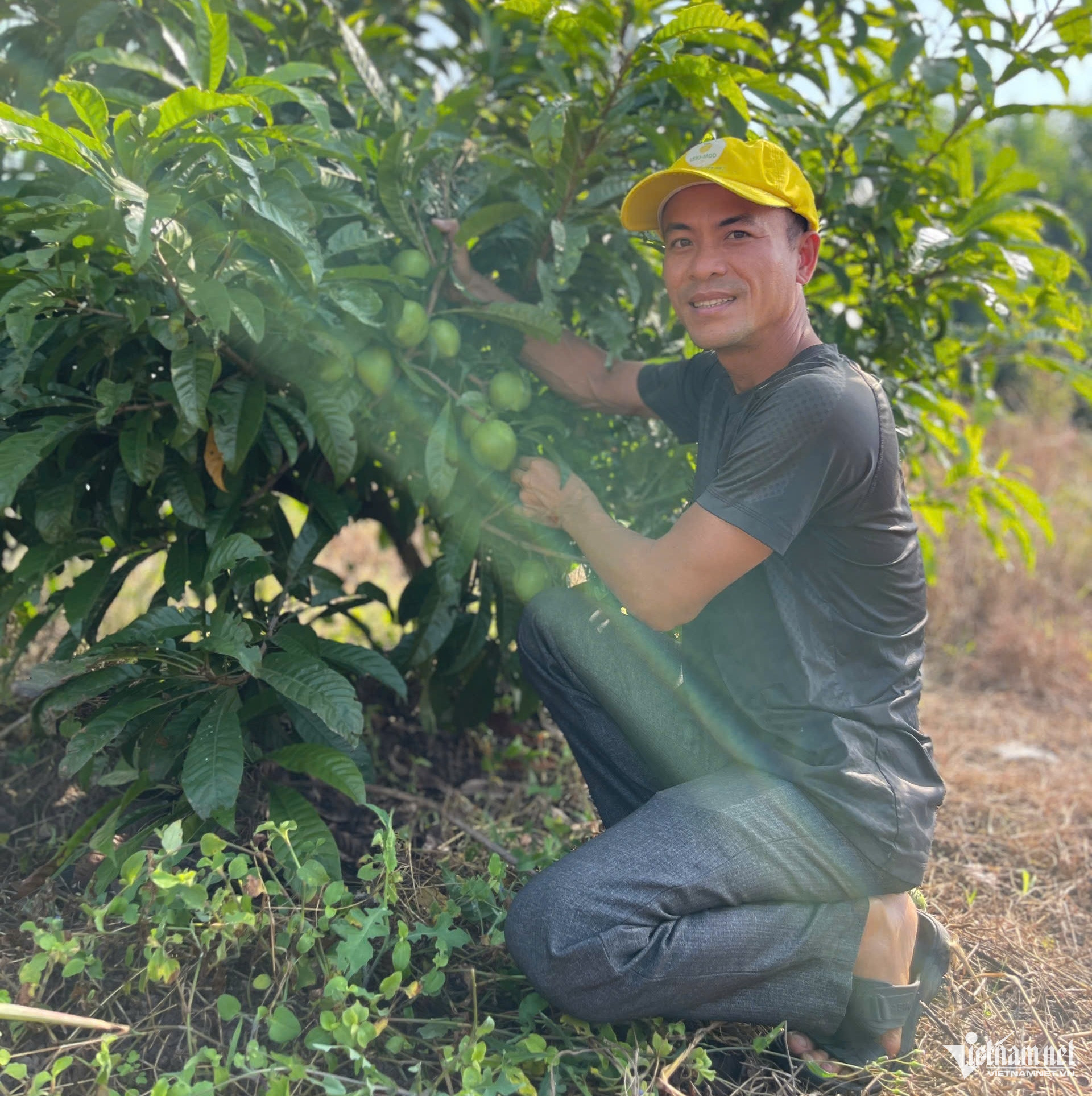 Anh Hiếu bên vườn cây lêkima. Ảnh: Quang Hưng
