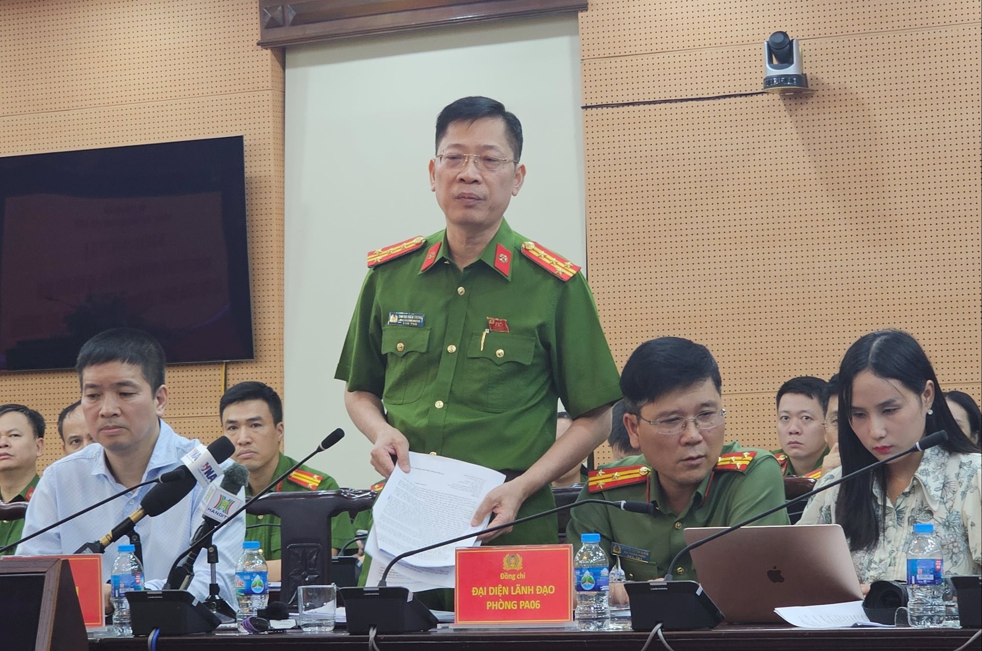 Đại tá Thành Kiên Trung, Phó phòng PC03, CA Hà Nội thông trả lời báo chí tại buổi họp báo