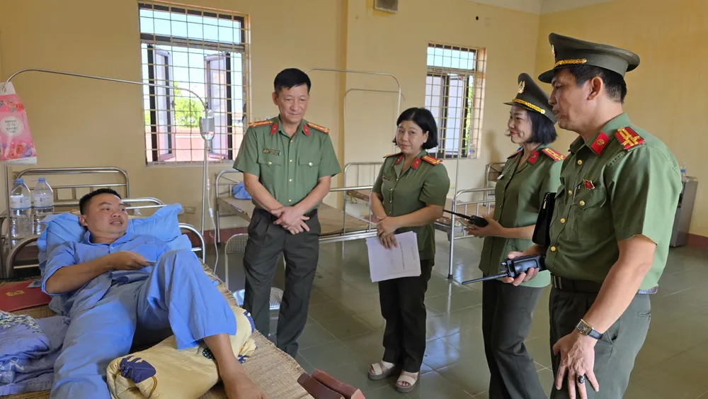 Thay mặt Đảng ủy, Giám đốc Công an tỉnh, Đại tá Hà Trọng Trung biểu dương tinh thần, trách nhiệm của các cán bộ, chiến sỹ. Đại tá Trung mong muốn họ sớm bình phục sức khỏe để trở lại công tác.
