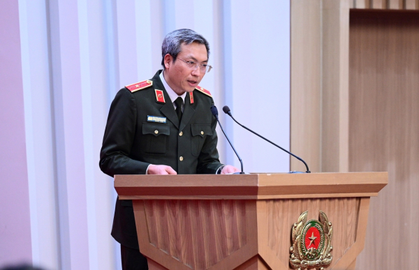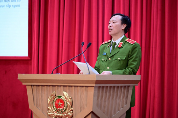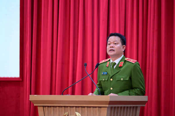 Thiếu tướng Vũ Văn Tấn, Cục trưởng Cục Cảnh sát Quản lý hành chính về trật tự xã hội, Bộ Công an tham luận tại hội nghị.