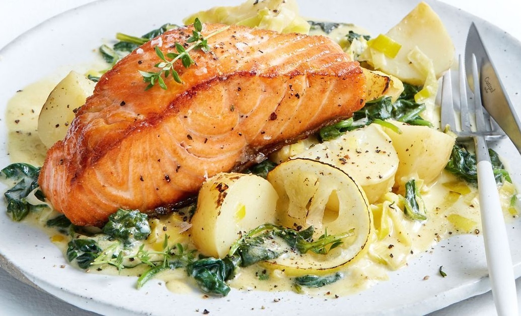 Cá hồi là loại thực phẩm giàu protein, axit béo omega-3, giúp cải thiện mỡ gan. Ảnh: Taste.
