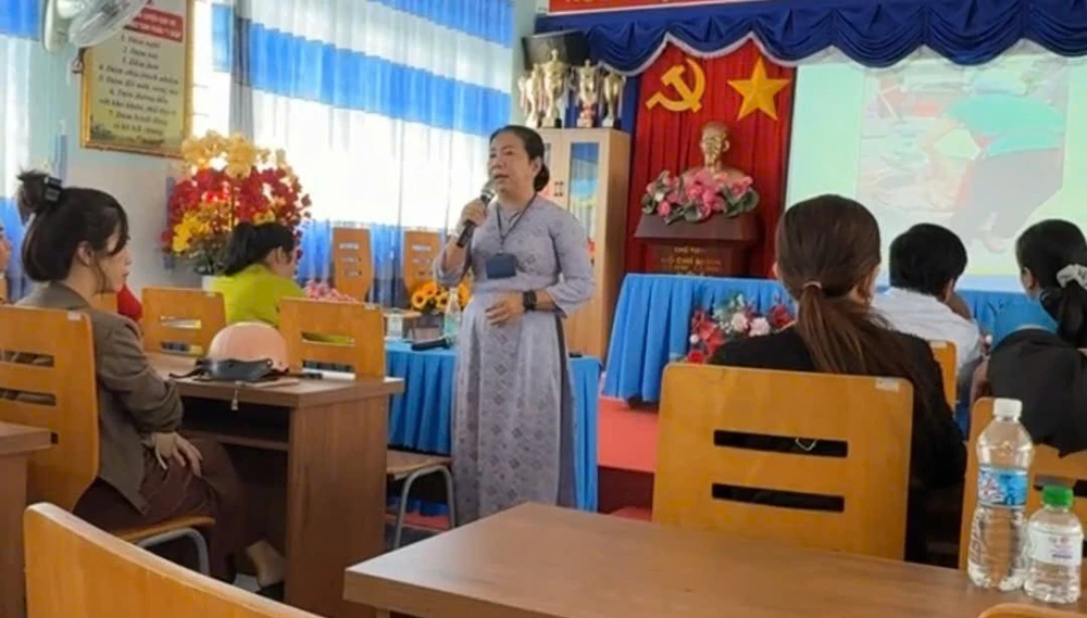 Đại diện nhà trường thông tin về vụ việc cho phụ huynh.