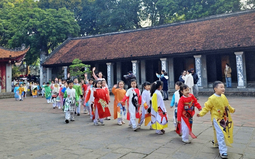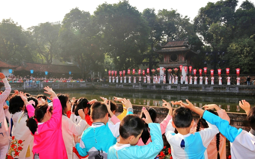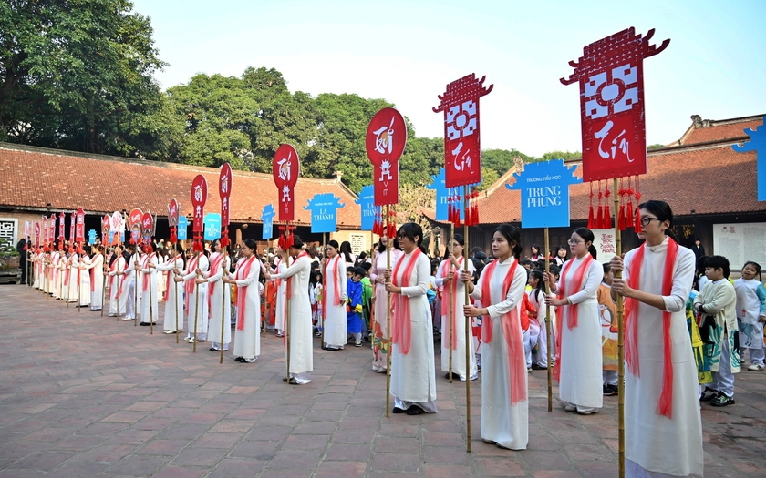 Cuộc diễu hành nối dài từ khu nội tự Văn Miếu - Quốc Tử Giám sang Hồ Văn là hình ảnh biểu trưng cho tinh thần hiếu học, truyền thống tôn sư trọng đạo và niềm tin gửi gắm vào thế hệ tương lai - những mầm xanh đang tiếp bước con đường tri thức mà cha ông đã giữ gìn, vun đắp.
