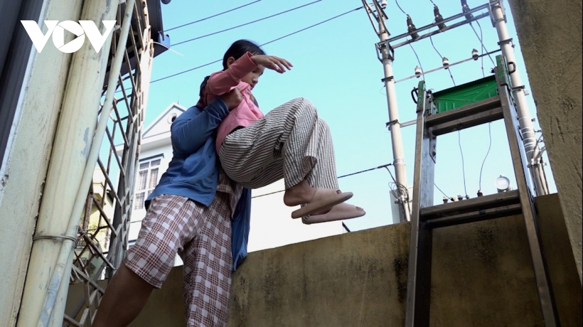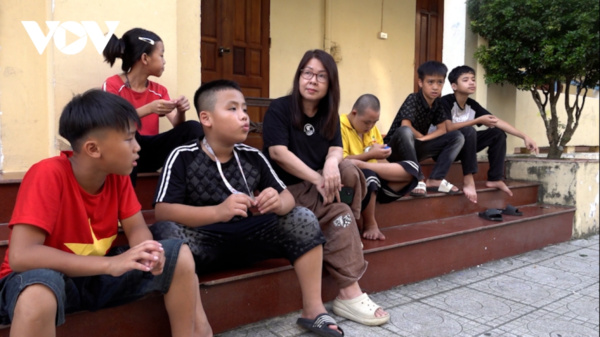 Cô Nhung cho biết, nhà trường có 260 học sinh khuyết tật, trong đó 96 em ở nội trú mà những ngày nước ngập chỉ còn có 4 cô ở lại trong nom 96 em học sinh nên rất vất vả và khó khăn.