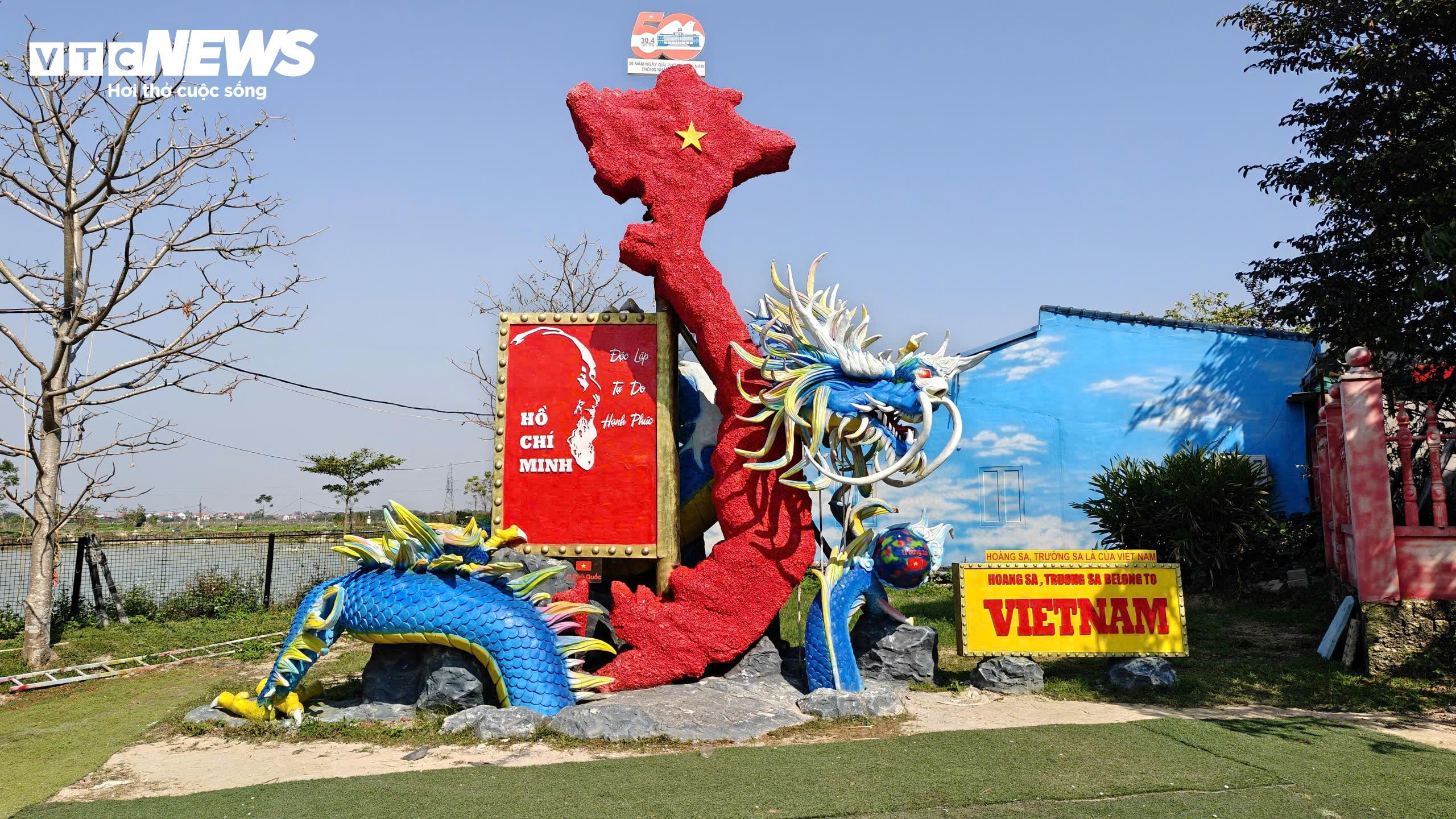 Tác phẩm 50 năm Ngày Giải phóng miền Nam, thống nhất đất nước của Bùi Văn Quân được trưng bày tại khu vườn Hạnh Phúc của anh.