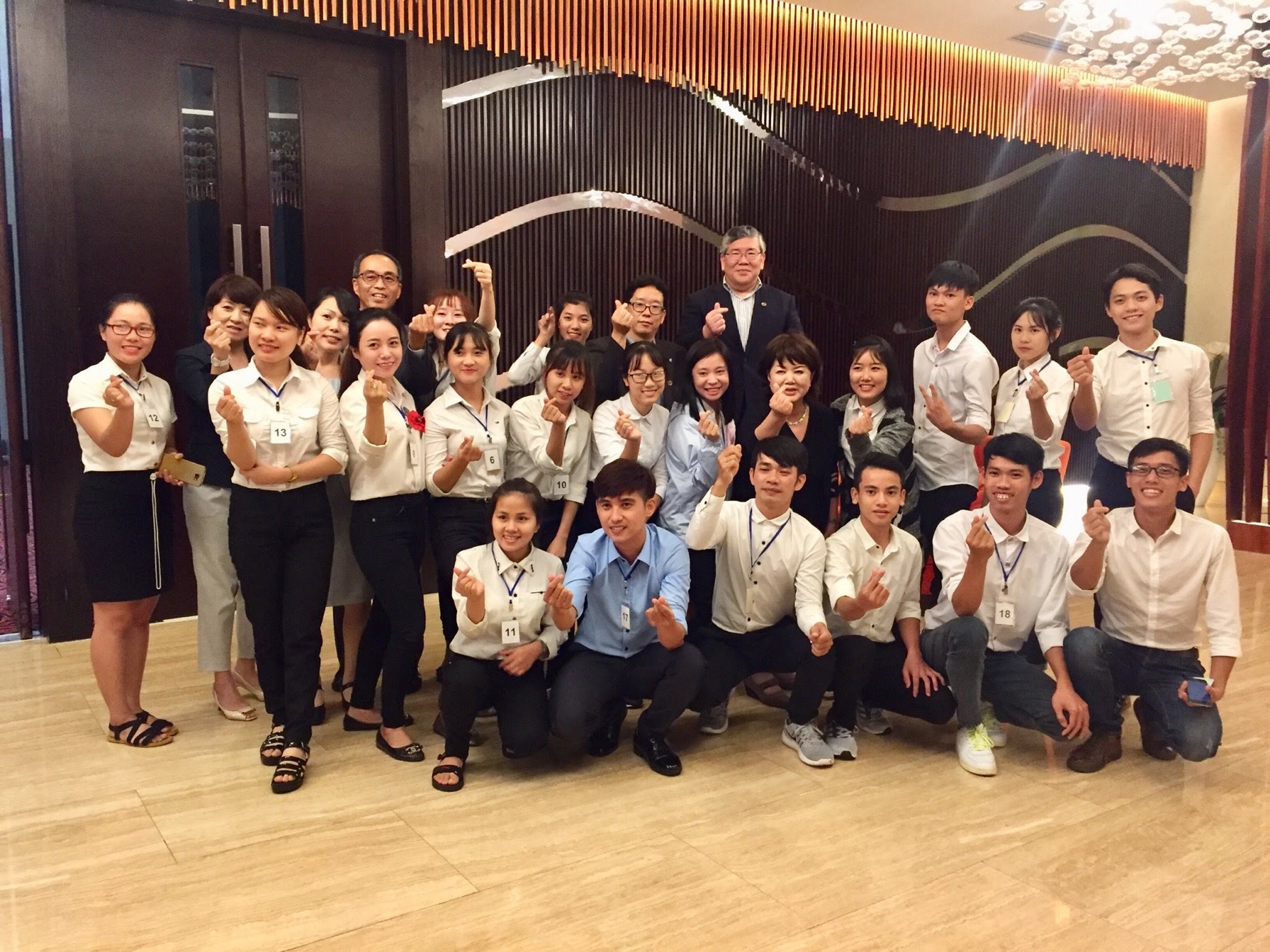 Tấn Tài (người số 2, hàng dưới, bên phải) chụp ảnh cùng đồng nghiệp.