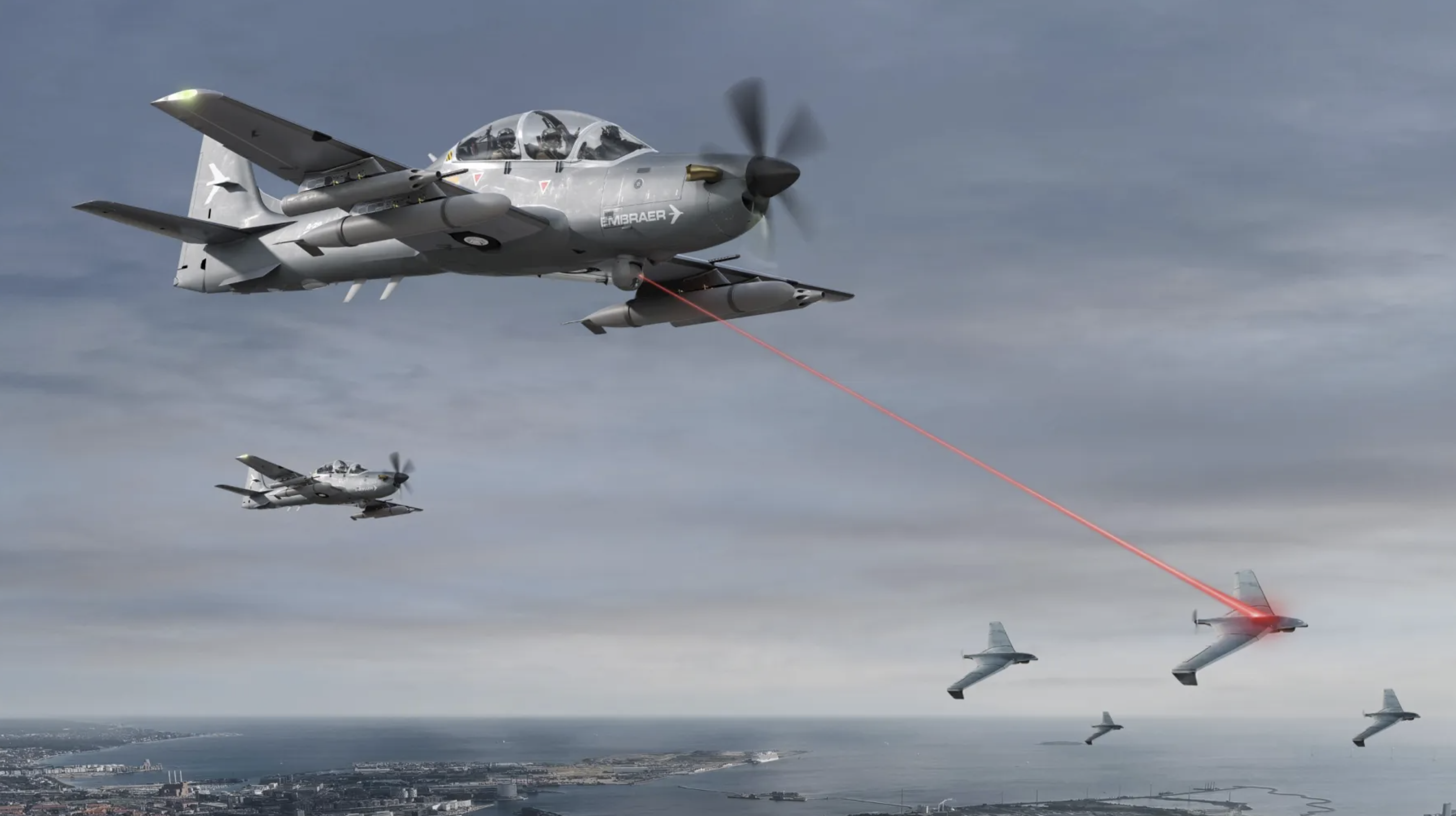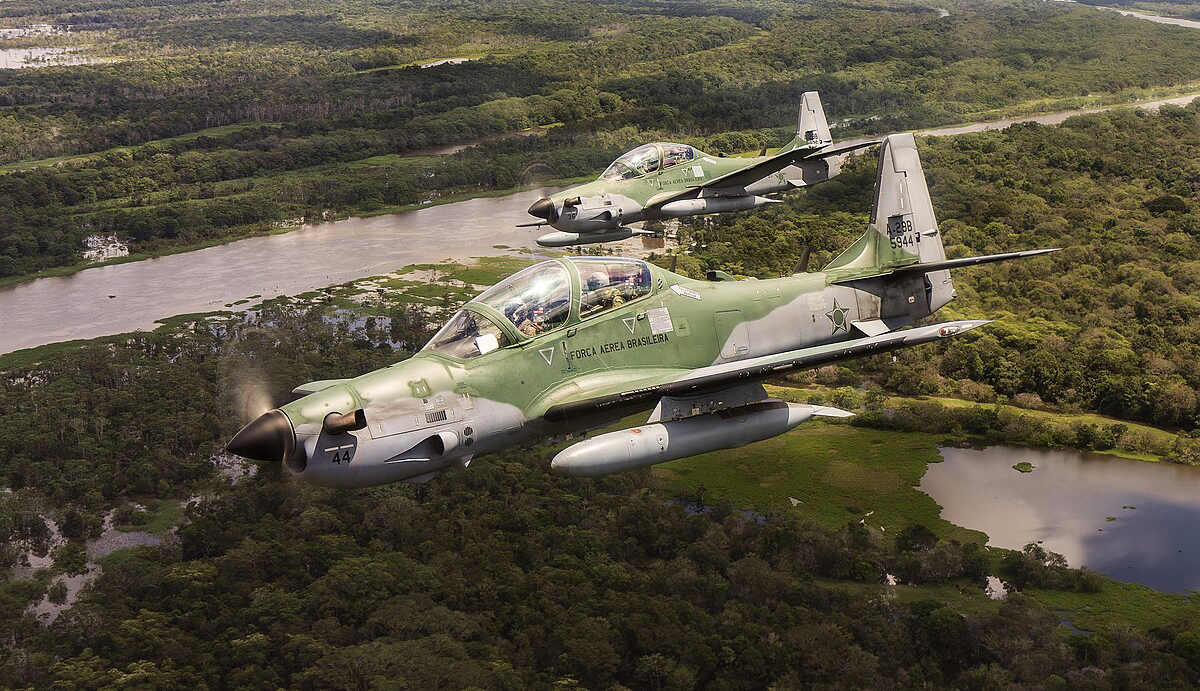 A-29 Super Tucano, dòng máy bay cánh quạt tấn công hạng nhẹ do Embraer sản xuất, đang được quảng bá như một giải pháp săn máy bay không người lái (UAV) hiệu quả và tiết kiệm.